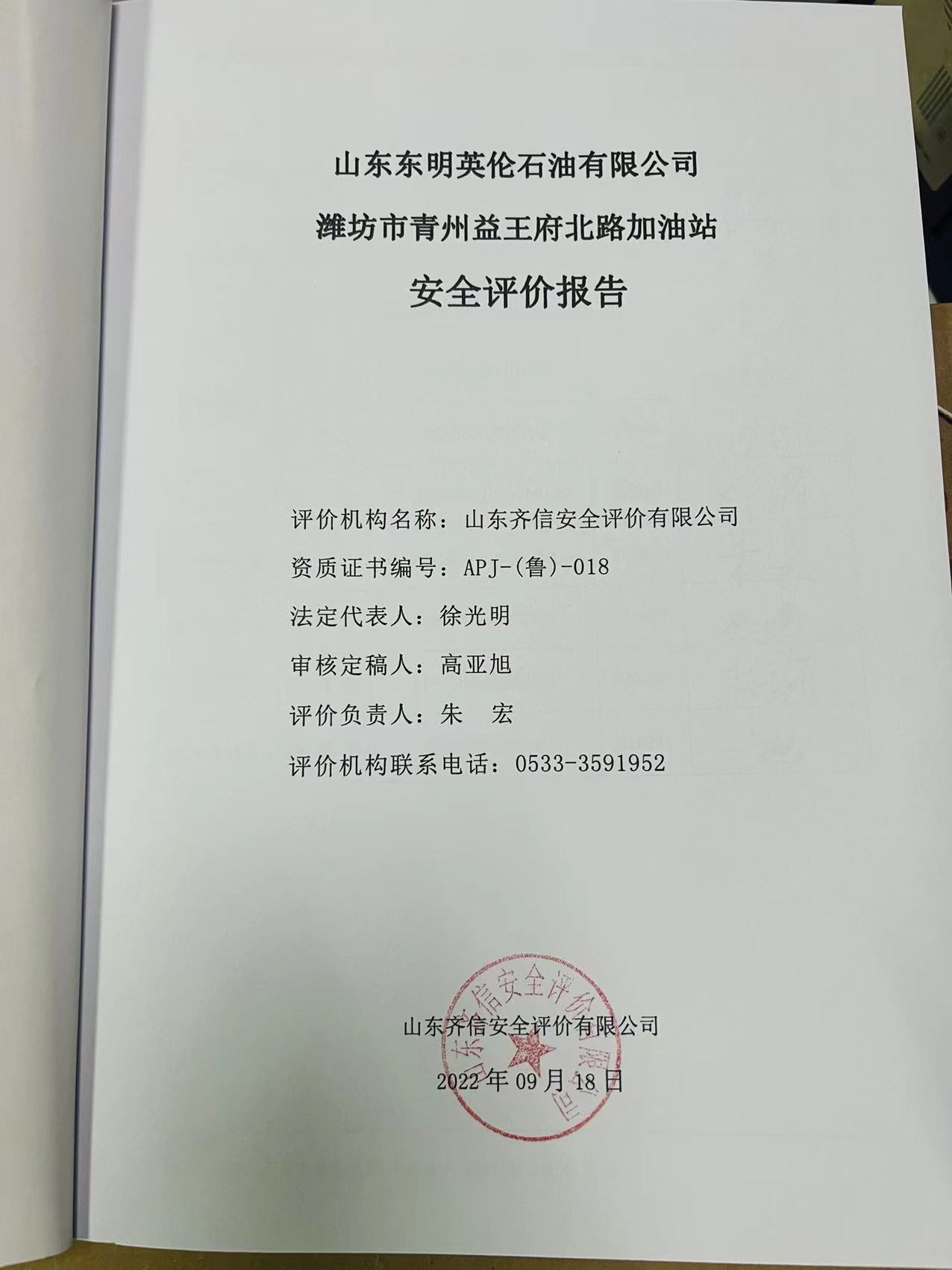 山东东明英伦石油有限公司潍坊市青州益王府北路加油站安全评价
