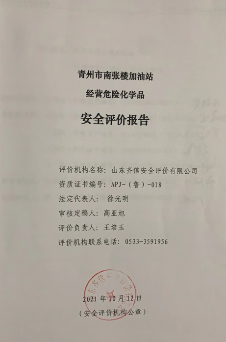 青州市南张楼加油站位于青州市何官镇南张楼村,该站成立于2008年12月11日,2016年11月24日取得青州市场监督管理局核发的营业执照,投资人为袁普春。该加油站主要从事汽油和柴油的经营,经营方式为零售。 该站于 2020年11月26日取得成品油零售经营批准证书,该加油站成品油零售经营批准证书有效期为2020年11月26日至2025年11月26日(证书编号:鲁油零售证书第3707113087号)。该站持有的《危险化学品经营许可证》(证书编号:鲁潍危化经[2018]007037号),有效期自2018年10月30日至2021年10月29日。 加油站自西向东排列依次为:加油区(罩棚),站房、埋地柴油罐(单独设置),埋地储油罐区布置在站房南侧,罐区内有4个储油罐,自北向南依次为92#汽油罐,95#汽油罐,柴油罐,柴油罐。油罐区南侧、东侧设不低于2.2米的实体围墙,西侧设置彩钢板与加油区隔离。 加油站罩棚下设4台机加油机,南北向布置,自北向南依次是单枪汽油加油机,双枪柴油加油机,双枪汽油加油,双枪柴油加油机。加油机设置在罩棚下的加油岛上,加油岛宽1.2米,高0.2米,罩棚支柱距加油岛端的距离2.2m,加油岛外侧设置高度0.5米的防撞柱。加油区罩棚高度6m,罩棚遮盖加油机的平面投影距离为2m。 |