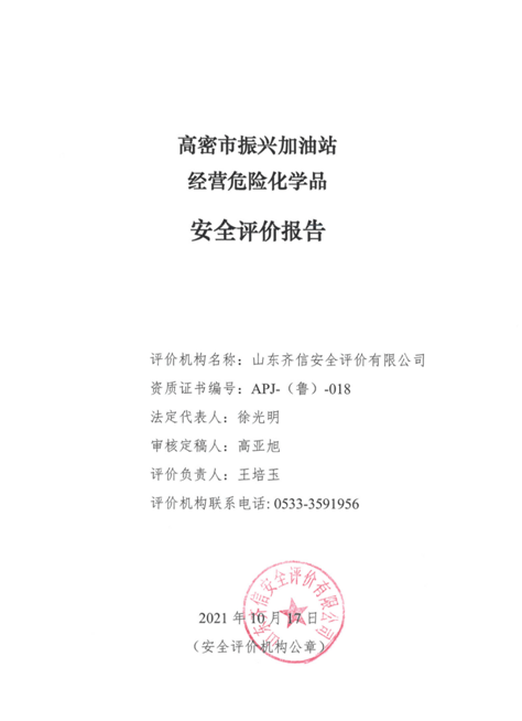 高密市振兴加油站位于山东省潍坊市高密市柴沟镇注沟社区胶王路北注田路东,该站成立于2013年01月,投资人为潘玉冰,2016年1月18日取得高密市市场监督管理局核发的新的营业执照。该加油站主要从事汽油和柴油的经营,经营方式为零售。 该站2021年1月27日取得新的成品油零售经营批准证书,有效期至2026年1月27日(证书编号:鲁油零售证书第3707033091号)。该站持有的《危险化学品经营许可证》(登记编号:鲁潍危化经[2018]009025号),有效期自2018年11月7日至2021年11月6日。 该加油站主要经营的危险化学品为汽油、柴油,共有加油机4台(北侧2台加油机停用),其中双枪汽油加油机1台、双枪柴油加油机1台;该站设有埋地卧式内钢外玻璃纤维增强塑料双层储油罐2台,其中1台24m3汽油罐,1台24m3柴油罐,柴油折半后计入加油站储罐总容积为36m3,该加油站为三级加油站。油罐区日常汽油、柴油的最大存储量分别为19.06t、21.22t,未构成重大危险源。 |
