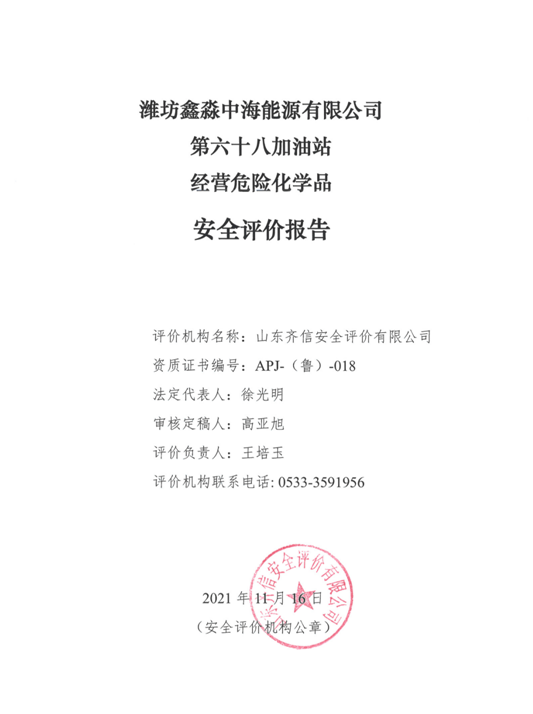潍坊鑫淼中海能源有限公司第六十八加油站成立于2019年1月,于2019年1月23日取得潍坊市寒亭区市场监督管理局核发的营业执照,注册地址为山东省潍坊市寒亭区固堤街道办事处固堤一村央赣路西侧,法定代表人为张金水,该加油站主要从事汽油和柴油的经营,经营方式为零售。 该加油站成品油零售经营批准证书有效期为2019年3月26日至2024年3月26日(证书编号:鲁油零售证书第3707101033号)。该站持有的《危险化学品经营许可证》(登记编号:鲁潍危化经[2019]003001号),有效期自2019年1月16日至2022年1月15日。该加油站在营业期间未发生安全事故。 该加油站主要经营的危险化学品为汽油、柴油,共有四枪三油品加油机4台;该站设有埋地卧式内钢外玻璃纤维增强塑料双层储油罐3台,其中汽油罐2台,容积均为15m3,柴油罐1台,容积为30m3。柴油折半后计入加油站储罐总容积为45m3,该加油站为三级加油站。油罐区日常汽油、柴油的最大存储量分别为23.9t、26.6t,未构成重大危险源。 |