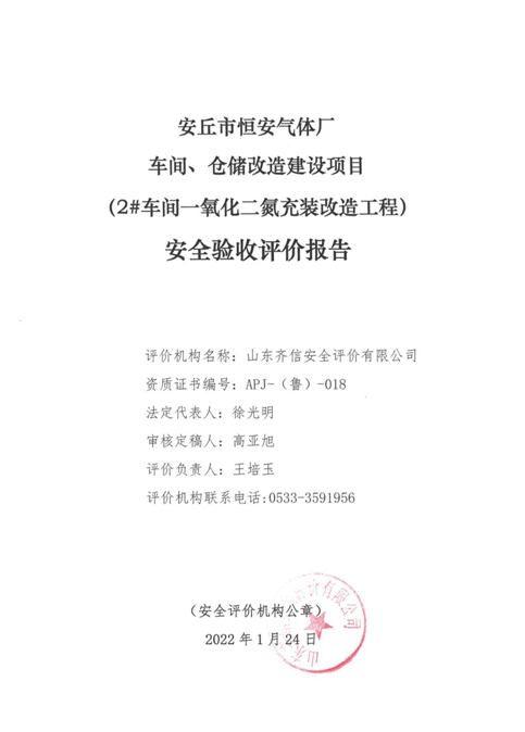 前 言 安丘市恒安气体厂成立于2000年5月29日,注册地址为山东省潍坊市安丘市新安街道新西外环路东侧(陈家楼村东),投资人为刘德军,公司注册资金500万元,为个人独资企业。 该公司经营范围为一般项目:食品添加剂销售;基础化学原料制造(不含危险化学品等许可类化学品的制造) ;专用化学产品制造(不含危险化学品) ;专用化学产品销售(不含危险化学品) ;消防器材销售;安全、消防用金属制品制造;特种设备销售;特种设备出租;金属链条及其他金属制品销售;第一类医疗器械销售;第二类医疗器械销售(除依法须经批准的项目外,凭营业执照依法自主开展经营活动)许可项目;危险化学品生产;危险化学品经营;危险化学品仓储;燃气经营;食品添加剂生产;移动式压力容器/气瓶充装;消防设施工程施工;特种设备制造;特种设备安装改造修理;特种设备检验检测服务;特种设备设计;货物进出口;技术进出口;药品生产;第三类医疗器械经营。 安丘市恒安气体厂现有南北两个厂区,两厂区中间以生产路相隔。该公司氩气、氮气及一氧化二氮充装设施原位于北厂区,目前其充装供应能力已不能满足日益增长的市场需求,充装原址已没有继续扩大的空间,安丘市恒安气体厂为适应市场需求,结合本公司实际情况,于2021年4月在公司南厂区进行车间、仓储改造建设项目(2#车间一氧化二氮充装改造工程),新购置氮气储罐、氩气储罐各1台,均为15m3,新增氮气、氩气充装设施各一套;一氧化二氮储罐1台(利旧),储罐总容积25m³;二氧化碳储罐1台(利旧),容积30m3。2#充装车间(一氧化二氮充装间)改造,厂区北侧新建值班室一处。 |