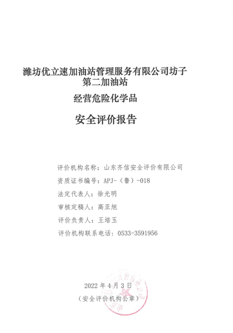 潍坊优立速加油站管理服务有限公司坊子第二加油站位于山东省潍坊市坊子区经济发展区原坊子区荆山洼镇206国道路西,该站成立于2019年5月27日,2019年6月4日取得潍坊市坊子区行政审批服务局核发的新的营业执照,负责人为林捷。该加油站主要从事汽油和柴油的经营,经营方式为零售。 该站于 2019年5月31日取得成品油零售经营批准证书,该加油站成品油零售经营批准证书有效期为2019年5月31日至2024年5月31日(证书编号:鲁油零售证书第3707043038号)。该站持有的《危险化学品经营许可证》(证书编号:鲁潍危化经[2019]004009号),有效期自2019年5月17日至2022年5月16日。该加油站在营业期间未发生安全事故。设置了液位仪,可以有效避免油料溢罐引发的安全事故。 加油站主营汽油、柴油等成品油,共有加油机4台,双枪汽油加油机1 台,双枪柴油加油机1台,单枪汽油加油机1台,单枪柴油加油机1台;该站设有内钢外玻璃纤维增强塑料双层储罐4台,其中2台30m3汽油罐,2台30m3柴油罐,柴油折半后计入加油站储罐总容积为90m3,该加油站为三级加油站。该站采用自吸式加油工艺,每台加油机设置独立的进油管。 |