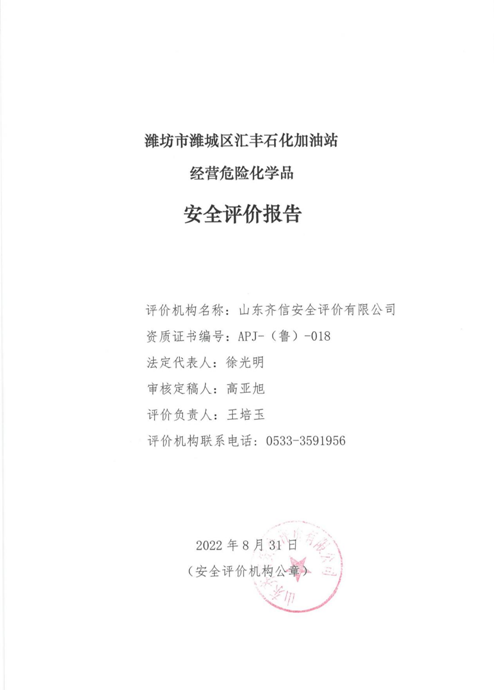 潍坊市潍城区汇丰石化加油站位于山东省潍坊市潍城区潍高路于河镇路段 16 公里处,该站成立于2007年06月20日,2020年09月15日取得潍坊市潍城区行政审批服务局核发的营业执照,该站法人代表为林太旺。该加油站主要从事汽油和柴油的经营,经营方式为零售。 该站于2021年3月18日取得《成品油零售经营批准证书》,有效期为2021年3月18日至2026年3月18日(证书编号:鲁油零售证书第3707133034号)。该站持有的《危险化学品经营许可证》(证书编号:鲁潍危化经[2019]002060号),有效期自2019年11月30日至2022年11月29日。 该加油站主营汽油、柴油等成品油,共有加油机8台,汽油加油机 4 台(双枪加油机 2 台,单枪加油机 2 台),柴油加油机 4 台(双枪加油机 2,单枪加油机 2 台),汽油主要经营92#、95#,柴油冬季经营-10#,其它季节经营0#。无自助加油机。该站设有单层钢质油罐6台,油罐安装在罐池内,罐池进行了防渗处理,其中20m3汽油储罐2台,20m3柴油储罐4台(油罐自东向西依次为0#、0#、0#、0#、95#、92#)。柴油折半后计入加油站储罐总容积为80m3,该站为三级加油站。该站采用自吸式加油工艺,加油管道为双层复合管材,管道最低点设检漏点,进油、通气、油气回收系统管道为流体输送用钢管,加油工艺管道全部埋地设置,且不穿越站房,罐池进行了防渗处理并设置了漏油检测立管。汽油卸油、加油设施均设置油气回收系统,油罐设置了液位仪,可以有效避免油料溢罐引发的安全事故。 |