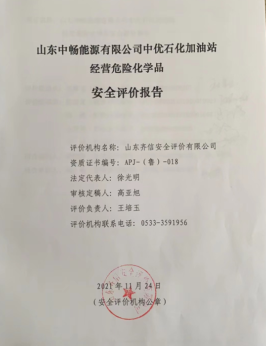 山东中畅能源有限公司中优石化加油站位于山东省潍坊市安丘市永安路与双丰大道交叉路口东北角。该加油站原名潍坊圣康经贸有限公司安丘加气加油站,成立于2021年1月22日,2021年08月12日产权整体转让给山东中畅能源有限公司,法定代表人为刘志鹏。主要从事汽油和柴油的经营,经营方式为零售;润滑油零售。 该加油站原站是潍坊圣康经贸有限公司安丘加气加油站,仅建设了加油站部分,加氢站仅建设了站房,已放弃建设。成品油零售经营批准证书有效期为2021年01月22日至2026年01月22日(证书编号:鲁油零售证书第3707092018号),原站持有的《危险化学品经营许可证》(登记编号:鲁危化[2020]082有效自2029月1820239月17 日,许可范围为汽油、柴油(闭杯闪点≤60℃。未经营。2021年08月12转山能源有限公司。更名为山东中畅能源有限公司中优石化加油站。 该加油站主营汽油、柴油,共有加油机4台,加油枪16只;其中汽油枪12支,柴油枪4支,无自助加油机。加油作业区配备了灭火器,设置了警示标识及区域标识。 该站设有埋地卧式双内钢外玻璃纤维增强塑料双层储罐5台,汽油罐3台、柴油罐2台,均为30m3,柴油折半计入总容积,加油站储罐总容积为120m3,该站为二级加油站。其它见加油站基本情况表。 该站罐区设防渗罐池,池内设防渗检测立管,检测立管直径 100mm,壁厚不小4mm,检测口设有防止雨水、油污、杂物侵入的保护盖和标识。覆土厚度0.5m。储罐设置了带有高液位报警功能的液位检测仪,用于检测液位,当容量达到90%时,发出报警信号;该液位仪具有渗漏检测功能。 |