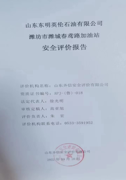 山东东明英伦石油有限公司潍坊市潍城春鸢路加油站位于山东省潍坊市潍城区春鸢路2809号。该站原名为中国石油天然气股份有限公司山东潍坊销售分公司山东潍坊销售分公司第二十三加油站,后由山东东明英伦石油有限公司租赁,成立于2020年1月7日,取得潍坊市潍城区行政审批服务局颁发的营业执照。该加油站主要从事汽油和柴油的经营,经营方式为零售,法定代表人为李开宽。类型为有限责任公司分公司(非自然人投资或控股的法人独资)。 该加油站现有汽油双层罐3个,单罐容积30m3,柴油双层罐2个,单罐容积为30m3,柴油折半计入,该加油站油罐总容积为120m3,根据《汽车加油加气加氢站技术标准》(GB50156-2021)第3.0.9条之规定,为二级加油站。 该加油站由于法定代表人更换,于2022年6月14日更换了危险化学品经营许可证(证书编号:鲁潍危化[2019]002081号),有效期至2023年1月1日;于2022年8月15日换发了成品油零售经营许可证(证书编号:鲁油零售证书第3707133068),有效期至2027年8月15日。 该加油站现有职工6人,其中专职安全管理人员1人,主要负责人和安全员已通过安全生产知识和管理能力考核合格,并取证。 依据《中华人民共和国安全生产法》(中华人民共和国主席令[2002]第70号,根据2021年6月10日中华人民共和国第十三届全国人民代表大会常务委员会第二十九次会议《全国人民代表大会常务委员会关于修改〈中华人民共和国安全生产法〉的决定》修正)、《危险化学品安全管理条例》(国务院令第591号,根据国务院令第645号修订)、《危险化学品经营许可证管理办法》(国家安全生产监督管理总局令第55号,根据安监总局令第79号修订)的要求,危险化学品经营许可证换发需进行安全评价,因此,山东东明英伦石油有限公司潍坊市潍城春鸢路加油站委托山东齐信安全评价有限公司进行经营危险化学品安全评价。 接受委托后,山东齐信安全评价有限公司成立评价组,在进行资料与标准收集、现场调研、项目资料分析、危险与有害因素分析的基础上,依据《安全评价通则》(AQ8001-2007)、《山东省加油站安全评价导则》(鲁安监发〔2006〕114号),通过对该加油站安全管理、站址选择及总平面布置、加油工艺及设施、其他设施等方面的审查,选择相应的评价方法对其危险、有害因素进行辨识和评价,编写完成了《山东东明英伦石油有限公司潍坊市潍城春鸢路加油站安全评价报告》。 |