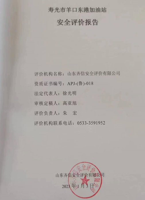 寿光市羊口东港加油站成立于2005年01月11日,注册地位于寿光市羊口镇进港路一号羊临路东侧,投资人为张治国。经营范围包括零售:汽油、柴油(有效期限以许可证为准)(依法须经批准的项目,经相关部门批准后方可开展经营活动)。 该加油站现有埋地油罐3个,储罐均为双层储罐,具体为单罐容积10m3的埋地汽油罐2台,单罐容积30m3的埋地柴油罐1台,柴油折半计入,该加油站油罐总容积为35m3,根据《汽车加油加气加氢站技术标准》(GB50156-2021)第3.0.9条之规定,为三级加油站。 该加油站于2020年3月24日换发了危险化学品经营许可证(证书编号:鲁潍危化[2019] 005201号),有效期至2023年3月24日;于2021年01月18日换发了成品油零售经营许可证(证书编号:鲁油零售证书第3707123062),有效期至2026年01月18日。 该加油站现有职工5人,其中站长1人,安全员1人,站长和安全员已通过安全生产知识和管理能力考核合格,并取证。 依据《中华人民共和国安全生产法》(中华人民共和国主席令[2002]第70号,根据2021年6月10日中华人民共和国第十三届全国人民代表大会常务委员会第二十九次会议《全国人民代表大会常务委员会关于修改〈中华人民共和国安全生产法〉的决定》修正)、《危险化学品安全管理条例》(国务院令第591号,根据国务院令第645号修订)、《危险化学品经营许可证管理办法》(国家安全生产监督管理总局令第55号,根据安监总局令第79号修订)的要求,危险化学品经营许可证换发需进行安全评价,因此,寿光市羊口东港加油站委托山东齐信安全评价有限公司进行经营危险化学品安全评价。 接受委托后,山东齐信安全评价有限公司成立评价组,在进行资料与标准收集、现场调研、项目资料分析、危险与有害因素分析的基础上,依据《安全评价通则》(AQ8001-2007)、《山东省加油站安全评价导则》(鲁安监发〔2006〕114号),通过对该加油站安全管理、站址选择及总平面布置、加油工艺及设施、其他设施等方面的审查,选择相应的评价方法对其危险、有害因素进行辨识和评价,编写完成了《寿光市羊口东港加油站安全评价报告》。 |