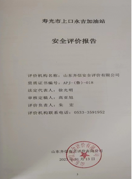 寿光市上口永吉加油站成立于2005年11月2日,注册地位于寿光市上口镇东堤村,投资人为李茂田。经营范围包括零售:汽油[-18℃≤闪点<23℃]、柴油、润滑油(有效期限以许可证为准)(依法须经批准的项目,经相关部门批准后方可开展经营活动)。 该加油站现有3台储罐,其中汽油罐2台,柴油罐1台,单罐容积均为15m3,柴油折半计入,该站储罐总容积为37.5m3,根据《汽车加油加气加氢站技术标准》(GB50156-2021)第3.0.9条之规定,为三级加油站。 该加油站已取得成品油零售经营批准证书,证书编号为:鲁油零售证书第3707123037号,证书有效期为2020年12月25日至2025年12月25日。2020年4月13日取得了危险化学品经营许可证,证书编号为:鲁潍危化经[2020]005013号,有效期2020年04月14日至2023年04月13日。该站经营期间未发生安全事故。 该加油站现有职工5人,其中站长1人,安全员1人,站长、安全员均已通过安全生产知识和管理能力考核合格,并已取证。 依据《中华人民共和国安全生产法》(中华人民共和国主席令[2002]第70号,根据2021年6月10日中华人民共和国第十三届全国人民代表大会常务委员会第二十九次会议《全国人民代表大会常务委员会关于修改〈中华人民共和国安全生产法〉的决定》修正)、《危险化学品安全管理条例》(国务院令第591号,根据国务院令第645号修订)、《危险化学品经营许可证管理办法》(国家安全生产监督管理总局令第55号,根据安监总局令第79号修订)的要求,危险化学品经营许可证换发需进行安全评价,因此,寿光市上口永吉加油站委托山东齐信安全评价有限公司进行经营危险化学品安全评价。 接受委托后,山东齐信安全评价有限公司成立评价组,在进行资料与标准收集、现场调研、项目资料分析、危险与有害因素分析的基础上,依据《安全评价通则》(AQ8001-2007)、《山东省加油站安全评价导则》(鲁安监发〔2006〕114号),通过对该加油站安全管理、站址选择及总平面布置、加油工艺及设施、其他设施等方面的审查,选择相应的评价方法对其危险、有害因素进行辨识和评价,编写完成了《寿光市上口永吉加油站安全评价报告》。 |