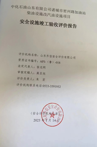 中化石油山东有限公司诸城市密州路加油站位于山东省潍坊市诸城市密州路东段外贸南侧(密州路60号),成立于2013年3月21日,类型为有限责任公司分公司(自然人投资或控股的法人独资),负责人牟洪鹏。 中化石油山东有限公司诸城市密州路加油站主要经营汽油、柴油,是成品油批发零售经营的加油站(以下均称加油站),于2022年10月10日换发了危险化学品经营许可证(证书编号:鲁潍危化经[2022]006042号),有效期:2022年10月12日至2025年10月11日;于2020年5月19日换发了成品油零售经营许可证(证书编号:鲁油零售证书第3707073003号),有效期:2020年5月19日至2025年5月19日。 该加油站原有30m³埋地汽油罐2个,30m³埋地柴油罐2个,总容量90m³(柴油折半),根据《汽车加油加气加氢站技术标准》(GB50156-2021)第3.0.9条之规定,为三级加油站。因经营需要,该加油站将1台30 m³柴油储罐改为92#汽油储罐,将1台加油机原有的两把柴油加油枪更换为两把汽油加油枪,改造后油站折合罐容由90 m³变为105 m³,由三级站升级为二级站。站内原有其他油罐、加油机等设施,以及站房等建筑购物未发生变化。 中化石油山东有限公司诸城市密州路加油站柴油设施改汽油设施项目(以下简称“该项目”)由山东新安达工程咨询有限公司编制了安全预评价报告、由山东鸿运工程设计有限公司编制了安全设施设计专篇,工程施工安装由青岛新华洲建工集团有限公司承担。项目改造完工后,建设单位、施工单位对项目建设、安装情况进行了联合验收,同意交付使用。 根据《中华人民共和国安全生产法》、《危险化学品安全管理条例》、《危险化学品建设项目安全监督管理办法》、《危险化学品经营许可证管理办法》等法律法规要求,该项目建设完成后应进行安全设施竣工验收评价。因此,中化石油山东有限公司诸城市密州路加油站委托山东齐信安全评价有限公司对该项目进行安全设施竣工验收评价。 受中化石油山东有限公司诸城市密州路加油站委托,山东齐信安全评价有限公司承担了该项目的安全设施竣工验收评价。双方签定《安全评价技术服务合同》后,山东齐信安全评价有限公司确定项目负责人,成立评价项目组,根据国家有关安全生产法律法规、行政规章及标准规范要求,通过对企业提供的资料进行分析和现场检查,结合其生产的实际情况,运用科学的评价方法进行定性、定量分析,提出合理、可行的安全对策措施及建议,并按照《危险化学品建设项目安全监督管理办法》、《山东省加油站安全评价导则》和有关法规、技术标准、文件的规定与要求编制完成了本评价报告。中化石油山东有限公司诸城市密州路加油站应对提供资料的真实性负全部责任。 |