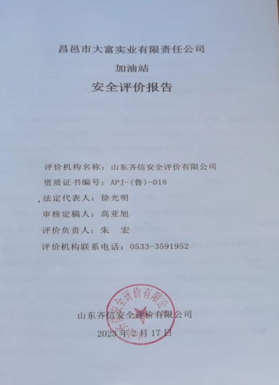 昌邑市大富实业有限责任公司加油站位于昌邑市柳疃镇前梁村,负责人为付文斐,类型为有限责任公司分公司(自然人投资或控股)。该站成立于1999年4月20日,取得昌邑市场监督管理局颁发的营业执照。该加油站于2020年8月3日换发了危险化学品经营许可证(鲁潍危化经[2020]010141号)。主要从事汽油和柴油的经营,经营方式为零售。 该加油站现有埋地油罐4个,储罐均为埋地双层SF卧式储罐,单罐容积均为20m3,其中汽油罐2个,柴油罐2个,柴油折半计入,该加油站油罐总容积为60m3,根据《汽车加油加气加氢站技术标准》(GB50156-2021)第3.0.9条之规定,为三级加油站。 该加油站现有职工6人,其中站长1人,安全员1人,主要负责人、安全员已通过安全生产知识和管理能力考核合格,并取证。 依据《中华人民共和国安全生产法》(中华人民共和国主席令[2002]第70号,根据2021年6月10日中华人民共和国第十三届全国人民代表大会常务委员会第二十九次会议《全国人民代表大会常务委员会关于修改〈中华人民共和国安全生产法〉的决定》修正)、《危险化学品安全管理条例》(国务院令第591号,根据国务院令第645号修订)、《危险化学品经营许可证管理办法》(国家安全生产监督管理总局令第55号,根据安监总局令第79号修订)的要求,危险化学品经营许可证换发需进行安全评价,因此,昌邑市大富实业有限责任公司加油站委托山东齐信安全评价有限公司进行经营危险化学品安全评价。 接受委托后,山东齐信安全评价有限公司成立评价组,在进行资料与标准收集、现场调研、项目资料分析、危险与有害因素分析的基础上,依据《安全评价通则》(AQ8001-2007)、《山东省加油站安全评价导则》(鲁安监发〔2006〕114号),通过对该加油站安全管理、站址选择及总平面布置、加油工艺及设施、其他设施等方面的审查,选择相应的评价方法对其危险、有害因素进行辨识和评价,编写完成了《昌邑市大富实业有限责任公司加油站安全评价报告》。 |