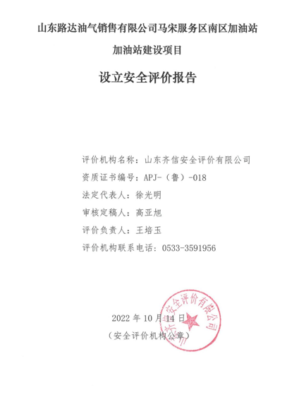 山东路达油气销售有限公司马宋服务区南区加油站项目位于山东省潍坊市昌乐县营丘镇济南至潍坊高速公路K75 处南侧。2022年5月25日取得昌乐县行政审批服务局核发的企业名称预先登记通知书。该加油站归山东路达油气销售有限公司进行管理。 山东路达油气销售有限公司马宋服务区南区加油站项目总占地面积为2500m2,总投资为450万元,建设内容包括新建罩棚1座,面积950m2;新建站房1层,占地面积149.5m2,由办公室、便利店、配电室、更衣室、卫浴间、控制室、备餐间(无明火)组成;集液器 1 台,消防一体箱(含危废间),三次油气回收处理装置1台,加油机6台(其中4台四枪四油品加油机,2台双枪双油品加油机),双层埋地油罐 5 台(其中30m3埋地汽油罐2台,30m3埋地柴油罐1台,50m3埋地汽油罐1台,50m3埋地柴油罐1台),加油站储罐总容积为150m3(柴油折半计);60m3LNG低温卧式储罐1台,LNG双枪加气机2台,LNG加气站低温潜液泵1台,依据《汽车加油加气加氢站技术标准》GB50156-2021第3.0.16条,该项目为一级加油加气站。 |