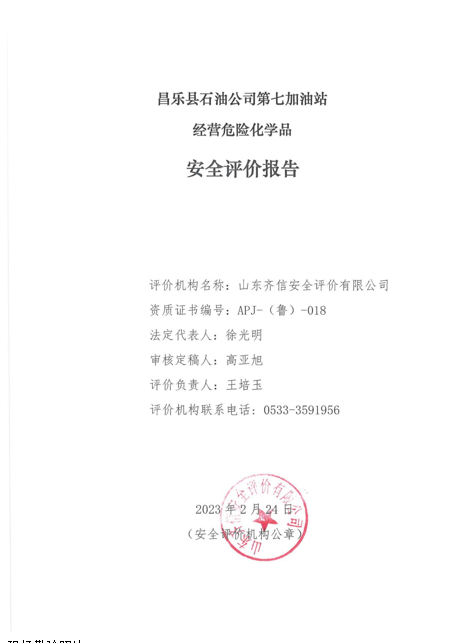 昌乐县石油公司第七加油站位于昌乐县乔官镇孟家淳于村东大沂路东侧,该站原名昌乐县鑫磊加油站,始建于2006年,该站于2020年9月18日取得昌乐县行政审批服务局核发的新的营业执照,负责人为刘亮。该加油站主要从事汽油和柴油的经营,经营方式为零售。 昌乐县石油公司第七加油站为昌乐县石油公司下属分公司,昌乐县石油公司成立于1994年2月,位于昌乐县王潍路西环路口,法人代表孔祥民,主要经营:汽油、柴油零售;零售预包装食品、保健食品;汽车清洗服务,润滑油、日用百货、化纤及化工产品(不含危险化学品)、针纺织品、汽车装饰装具、汽车零部件销售。 该站于2021年03月05日取得成品油零售经营批准证书,该加油站成品油零售经营批准证书有效期为2021年03月05日至2026年03月05日(证书编号:鲁油零售证书第3707053071号)。该站持有的《危险化学品经营许可证》(证书编号:鲁潍危化经[2020]011003号),有效期自2020年03月17日至2023年03月16日。该加油站在营业期间未发生安全事故。 该加油站主营汽油、柴油等成品油,共有加油机6台,其中单枪柴油加油机3台,双枪汽油加油机1台,单枪汽油加油机2台,汽油主要经营92#,柴油冬季经营-10#,其它季节经营0#,无自助加油机。该站设有单层钢质储罐3台,油罐安装在罐池内,罐池设置了隔池,罐池进行了防渗处理,罐池设置了直径100mm的渗漏检测立管,其中20m3汽油储罐1台,20m3柴油储罐2台,柴油折半后计入加油站储罐总容积为40m3,该站为三级加油站。 |