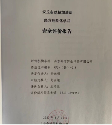 安丘市以超加油站位于安丘市兴安街道白芬子村安召路东侧,前身为安丘市白芬子供销社加油站,始建于2003年,该站2015年12月09日取得安丘市市场监督管理局核发的营业执照,投资人为刘以超。该加油站主要从事汽油和柴油的经营,经营方式为零售。 该站于2021年01月18日取得《成品油零售经营批准证书》,有效期为2021年01月18日至2026年01月18日(证书编号:鲁油零售证书第3707063042号)。该站持有的《危险化学品经营许可证》(证书编号:鲁潍危化经[2020]008007号),有效期自2020年4月12日至2023年4月11日。该加油站在营业期间未发生安全事故。 该加油站主营汽油、柴油等成品油,共有加油机4台,其中双枪汽油加油机1台,双枪柴油加油机1台,单枪汽油加油机1台,单枪柴油加油机1台;汽油主要经营92#、95#,柴油冬季经营-10#,其它季节经营0#,无自助加油机。该站设埋地卧式内钢外玻璃纤维增强塑料双层储油罐4台,其中汽油储罐2台,容积均为30m3,柴油储罐2台,容积均为30m3(油罐自北向南依次为95#、92#、0#、-10#),柴油折半后计入加油站储罐总容积为90m3,该站为三级加油站。 |