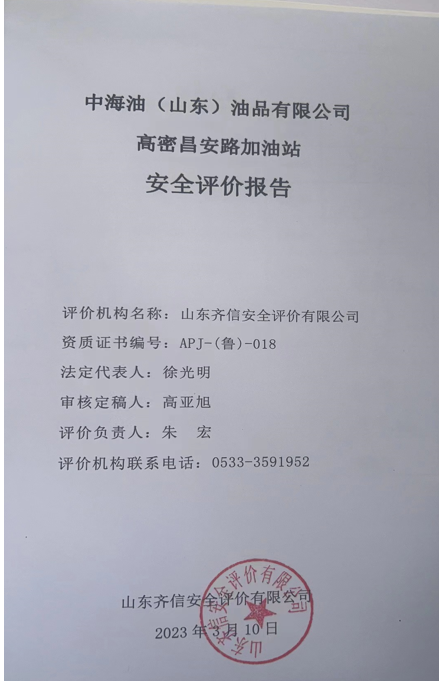 中海油(山东)油品有限公司高密昌安路加油站原名称为中海油山东销售有限公司高密昌安路加油站,该站成立于2017年5月25日,于2022年9月20日由中海油山东销售有限公司高密昌安路加油站变更名称为中海油(山东)油品有限公司高密昌安路加油站。站区位于山东省潍坊市高密市高密市醴泉街道昌安大道1117号1幢1号,法人代表为吴迪,负责人葛晓。取得高密市行政审批服务局颁发的营业执照,主要从事汽油和柴油的经营,经营方式为零售。 该加油站现有埋地油罐4个,储罐均为埋地双层SF卧式储罐,单罐容积均为30m3,其中汽油罐2个,柴油罐2个,柴油折半计入,该加油站油罐总容积为90m3,根据《汽车加油加气加氢站技术标准》(GB50156-2021)第3.0.9条之规定,为三级加油站。 该加油站现有职工6人,其中站长1人,安全员1人,主要负责人、安全员已通过安全生产知识和管理能力考核合格,并取证。 依据《中华人民共和国安全生产法》(中华人民共和国主席令[2002]第70号,根据2021年6月10日中华人民共和国第十三届全国人民代表大会常务委员会第二十九次会议《全国人民代表大会常务委员会关于修改〈中华人民共和国安全生产法〉的决定》修正)、《危险化学品安全管理条例》(国务院令第591号,根据国务院令第645号修订)、《危险化学品经营许可证管理办法》(国家安全生产监督管理总局令第55号,根据安监总局令第79号修订)的要求,危险化学品经营许可证换发需进行安全评价,因此,中海油(山东)油品有限公司高密昌安路加油站委托山东齐信安全评价有限公司进行经营危险化学品安全评价。 接受委托后,山东齐信安全评价有限公司成立评价组,在进行资料与标准收集、现场调研、项目资料分析、危险与有害因素分析的基础上,依据《安全评价通则》(AQ8001-2007)、《山东省加油站安全评价导则》(鲁安监发〔2006〕114号),通过对该加油站安全管理、站址选择及总平面布置、加油工艺及设施、其他设施等方面的审查,选择相应的评价方法对其危险、有害因素进行辨识和评价,编写完成了《中海油(山东)油品有限公司高密昌安路加油站安全评价报告》。 |