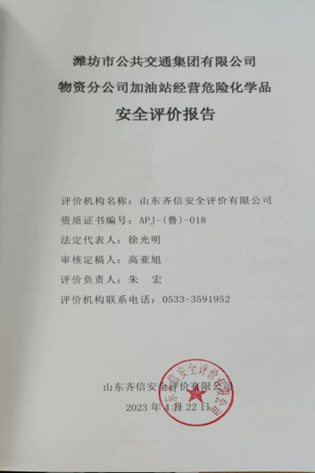潍坊市公共交通集团有限公司物资分公司加油站位于潍坊市潍城区东风西街669号,法定代表人为任勇,类型为有限责任公司分公司(国有独资)。该加油站成立于1991年3月8日,取得潍坊市潍城区行政审批服务局颁发的营业执照。经营范围:带有储存设施的经营,汽油、柴油(有效期限以许可证为准);销售:汽车配件。(依法须经批准的项目,经相关部门批准后方可开展经营活动)。 该加油站已取得成品油零售经营批准证书,证书编号:鲁油零售证书第3707023007号,证书有效期为2021年2月22日至2026年2月22日。2020年8月19日取得了危险化学品经营许可证,证书编号:鲁潍危化经[2020]002037号,有效期为2020年8月19日至2023年8月18日。该加油站经营期间未发生安全事故。 该加油站现有埋地油罐4个,储罐均为埋地双层SF卧式储罐,单罐容积均为30m3,其中汽油罐2个,柴油罐2个,柴油折半计入,该加油站油罐总容积为90m3,根据《汽车加油加气加氢站技术标准》(GB50156-2021)第3.0.9条之规定,为三级加油站。 该加油站现有职工7人,其中其中安全管理人员1人,技术管理人员1人,主要负责人、安全员已通过安全生产知识和管理能力考核合格,并取证,其他从业人员经本单位培训考核合格。 依据《中华人民共和国安全生产法》(中华人民共和国主席令[2002]第70号,根据2021年6月10日中华人民共和国第十三届全国人民代表大会常务委员会第二十九次会议《全国人民代表大会常务委员会关于修改〈中华人民共和国安全生产法〉的决定》修正)、《危险化学品安全管理条例》(国务院令第591号,根据国务院令第645号修订)、《危险化学品经营许可证管理办法》(国家安全生产监督管理总局令第55号,根据安监总局令第79号修订)的要求,危险化学品经营许可证换发需进行安全评价,因此,潍坊市公共交通集团有限公司物资分公司加油站委托山东齐信安全评价有限公司进行经营危险化学品安全评价。 接受委托后,山东齐信安全评价有限公司成立评价组,在进行资料与标准收集、现场调研、项目资料分析、危险与有害因素分析的基础上,依据《安全评价通则》(AQ8001-2007)、《山东省加油站安全评价导则》(鲁安监发〔2006〕114号),通过对该加油站安全管理、站址选择及总平面布置、加油工艺及设施、其他设施等方面的审查,选择相应的评价方法对其危险、有害因素进行辨识和评价,编写完成了《潍坊市公共交通集团有限公司物资分公司加油站安全评价报告》。 |