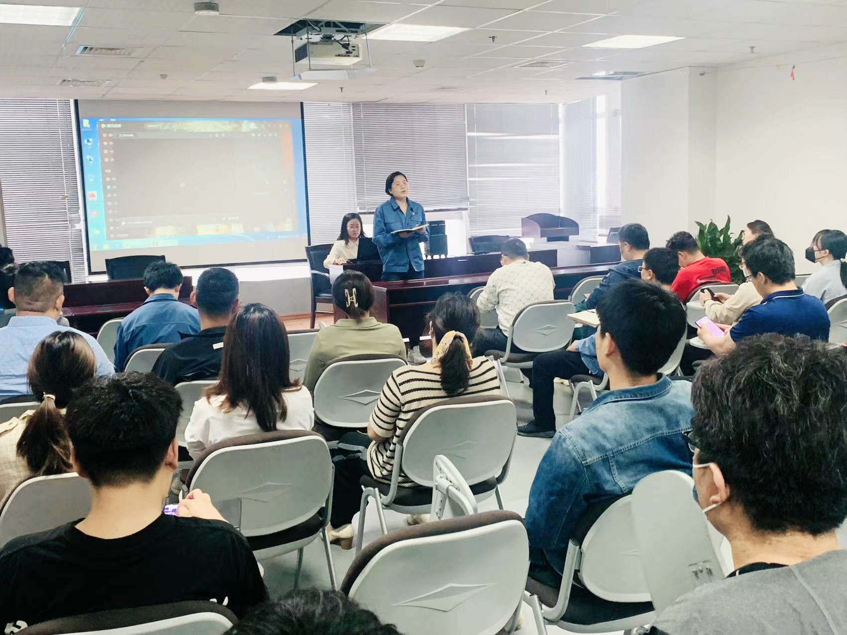 观影结束后,公司党支部书记郭培勋同志为获得淄博市“五一劳动标兵”的翟学研同志颁发奖杯。翟学研分享了自己的工作感悟,鼓励大家铆足干劲、砥砺前行,不给青春留遗憾。最后,郭书记激励大家,要有自强不息、只争朝夕的奋斗精神,面对困难和问题要有岿然不动的定力和破釜沉舟的勇气,肩负起时代的责任,正青春,要奋斗!