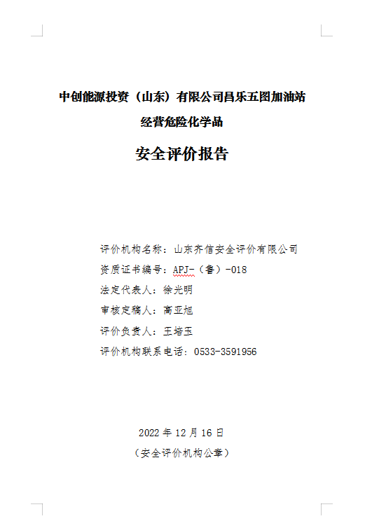 中创能源投资(山东)有限公司昌乐五图加油站位于昌乐县五图镇政府驻地南首昌五路西侧,2022年9月23日在昌乐县行政审批服务局进行了企业名称预先登记,投资人为郑立煌。该加油站主要从事汽油和柴油的经营,经营方式为零售。 该站前身为昌乐县五图镇农机加油站,成立于1993年08月12日,原法定代表人为刘升全。2022年9月2日昌乐县五图镇农机加油站与郑立煌签订了《租赁合同》,有效期自2022年9月2日至2032年9月1日。加油站名称变更为中创能源投资(山东)有限公司昌乐五图加油站。 该加油站主营汽油、柴油等成品油,共有加油机4台,其中双枪汽油加油机2台,双枪柴油加油机1台,双枪汽油柴油加油机1台,汽油主要经营92#、95#,柴油冬季经营-10#,其它季节经营0#。无自助加油机。该站设有埋地卧式内钢外玻璃纤维增强塑料双层储罐3台,其中10m3汽油储罐2台,10m3柴油储罐1台(油罐自北向南依次为92#、95#、0#)。柴油折半后计入加油站储罐总容积为25m3,该站为三级加油站。该站采用自吸式加油工艺,加油管道为KPS双层复合管材,管道最低点设检漏点,进油、通气、油气回收系统管道为流体输送用无缝钢管,加油工艺管道全部埋地设置,且不穿越站房。加油机加油软管设置安全拉断阀。加油管道、双层油罐的渗漏检测均采用液体传感器在线监测系统,传感器的检测精度不大于 3.5mm。油罐设置了高液位报警功能的液位监测系统,可以有效避免油料溢罐引发的安全事故。加油机机体、值班室内设置紧急切断按钮,并实现手动复位。加油站设有汽油卸油油气回收系统、加油油气回收系统和三次油气回收系统。 |