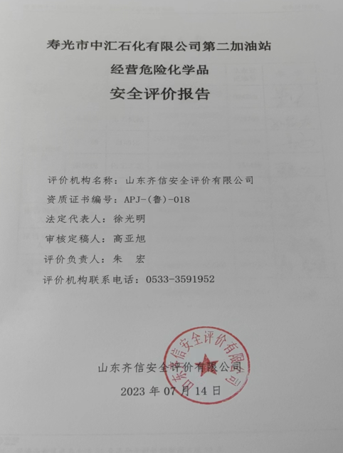 寿光市中汇石化有限公司第二加油站成立于2016年11月02日,注册地位于寿光市古城街道卧甲路以东南辛路以北,负责人为苗文强。经营范围包括带有储存设施的经营:汽油、柴油(以上范围凭许可证经营);销售:润滑油、日用百货、煤炭、焦炭、建材、钢材(依法须经批准的项目,经相关部门批准后方可开展经营活动)。 该加油站现有4台储罐,其中汽油罐2台,柴油罐2台,具体为92#汽油双层罐1个,容积50m3,95#汽油双层罐1个,容积50m3,柴油双层罐2个,容积为50m3,柴油罐随季节调整品种。柴油折半计入,该站储罐总容积为150m³,根据《汽车加油加气加氢站技术标准》(GB50156-2021)第3.0.9条之规定,为二级加油站。 该加油站已取得成品油零售经营批准证书,证书编号为:鲁油零售证书第3707123085号,证书有效期为2022年01月26日至2027年01月26日。因《危险化学品目录(2015版)》(应急管理部 工业和信息化部 公安部 生态环境部 交通运输部 农业农村部 卫生健康委 市场监管总局 铁路局 民航局 公告[2022]第8号)将“1674柴油[闭杯闪点≤60℃]”调整为“1674柴油”),2023年2月22日换发了危险化学品经营许可证,证书编号为:鲁潍危化经[2020]005086号,有效期2020年10月13日至2023年10月12日。该站经营期间未发生安全事故。该站经营期间未发生安全事故。 该加油站现有职工6人,其中站长1人,安全员1人,站长、安全员均已通过安全生产知识和管理能力考核合格,并已取证。 依据《中华人民共和国安全生产法》(中华人民共和国主席令[2002]第70号,根据2021年6月10日中华人民共和国第十三届全国人民代表大会常务委员会第二十九次会议《全国人民代表大会常务委员会关于修改〈中华人民共和国安全生产法〉的决定》修正)、《危险化学品安全管理条例》(国务院令第591号,根据国务院令第645号修订)、《危险化学品经营许可证管理办法》(国家安全生产监督管理总局令第55号,根据安监总局令第79号修订)的要求,危险化学品经营许可证换发需进行安全评价,因此,寿光市中汇石化有限公司第二加油站委托山东齐信安全评价有限公司进行经营危险化学品安全评价。 接受委托后,山东齐信安全评价有限公司成立评价组,在进行资料与标准收集、现场调研、项目资料分析、危险与有害因素分析的基础上,依据《安全评价通则》(AQ8001-2007)、《山东省加油站安全评价导则》(鲁安监发〔2006〕114号),通过对该加油站安全管理、站址选择及总平面布置、加油工艺及设施、其他设施等方面的审查,选择相应的评价方法对其危险、有害因素进行辨识和评价,编写完成了《寿光市中汇石化有限公司第二加油站安全评价报告》。 |