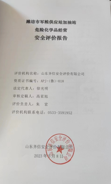 潍坊市军粮供应站加油站位于位于潍坊市潍城区春鸢路89号西侧,法定代表人为王保利,类型为全民所有制分支机构(非法人),站长王保利。该加油站成立于2001年7月16日,取得潍坊市潍城区市场监督管理局颁发的营业执照。经营范围:带有储存设施的经营:汽油、柴油(有效期限以许可证为准)。(依法须经批准的项目,经相关部门批准后方可开展经营活动)。 该加油站已取得成品油零售经营批准证书,证书编号:鲁油零售证书第3707133043号,证书有效期为2021年1月5日至2026年1月5日。2023年2月23日取得了危险化学品经营许可证,证书编号:鲁潍危化经[2020]002034号,有效期为2020年8月24日至2023年8月23日。该加油站经营期间未发生安全事故。 该加油站现有埋地油罐4个,储罐均为埋地双层SF卧式储罐,单罐容积均为25m3,其中汽油罐2个,柴油罐2个,柴油折半计入,该加油站油罐总容积为75m3,根据《汽车加油加气加氢站技术标准》(GB50156-2021)第3.0.9条之规定,为三级加油站。 该加油站现有职工5人,其中其中安全管理人员1人,主要负责人、安全员已通过安全生产知识和管理能力考核合格,并取证,其他从业人员经本单位培训考核合格。 依据《中华人民共和国安全生产法》(中华人民共和国主席令[2002]第70号,根据2021年6月10日中华人民共和国第十三届全国人民代表大会常务委员会第二十九次会议《全国人民代表大会常务委员会关于修改〈中华人民共和国安全生产法〉的决定》修正)、《危险化学品安全管理条例》(国务院令第591号,根据国务院令第645号修订)、《危险化学品经营许可证管理办法》(国家安全生产监督管理总局令第55号,根据安监总局令第79号修订)的要求,危险化学品经营许可证换发需进行安全评价,因此,潍坊市军粮供应站加油站委托山东齐信安全评价有限公司进行经营危险化学品安全评价。 接受委托后,山东齐信安全评价有限公司成立评价组,在进行资料与标准收集、现场调研、项目资料分析、危险与有害因素分析的基础上,依据《安全评价通则》(AQ8001-2007)、《山东省加油站安全评价导则》(鲁安监发〔2006〕114号),通过对该加油站安全管理、站址选择及总平面布置、加油工艺及设施、其他设施等方面的审查,选择相应的评价方法对其危险、有害因素进行辨识和评价,编写完成了《潍坊市军粮供应站加油站安全评价报告》。 |