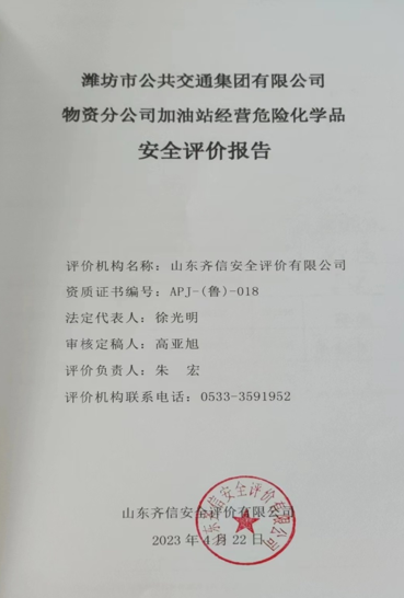 潍坊市公共交通集团有限公司物资分公司加油站安全评价