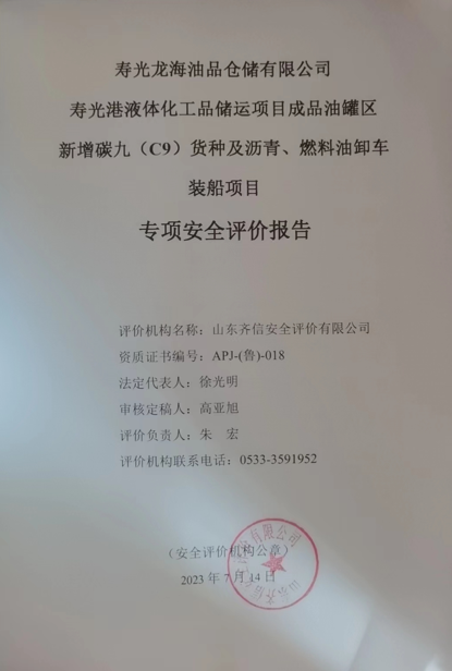 寿光港液化品储运项目成品罐区工程建有储罐16座,单罐容积均为7000m3,储罐类型均为内浮顶储罐,储存货种为汽油、柴油、石脑油、溶剂油、煤油、燃料油,储存规模为11.2万m3。主要有两个罐组组成,罐组(一)内设置10台7000m³内浮顶储罐,其中2台柴油储罐(也可储存煤油、燃料油),8台汽油储罐(也可储存柴油、石脑油、溶剂油、煤油、燃料油);罐组(二)内设置6台7000m³内浮顶储罐,其中2台柴油储罐(也可储存煤油、燃料油),4台汽油储罐(也可储存柴油、石脑油、溶剂油、煤油、燃料油)。该公司在港区内提供货物装卸、仓储服务。 根据公司业务发展需要,成品油罐区增加碳九(C9)货种,依托原有汽油储罐储存,新增货种及工艺如下: 碳九卸车装船工艺 碳九:汽车→卸车泵→输油管道→储罐→装船泵→库区输油管道→码头输油管道→码头装卸臂→船 碳九卸船工艺 船→码头装卸臂→码头输油管道→库区输油管道→储罐 燃料油、沥青卸车装船工艺 燃料油、沥青:汽车→卸车泵→库区输油管道→码头输油管道→复合软管→船。 受寿光龙海油品仓储有限公司的委托,山东齐信安全评价有限公司承担了寿光港液体化工品储运项目成品油罐区新增碳九(C9)货种及沥青、燃料油卸车装船项目的专项安全评价工作。根据《安全评价通则》(AQ 8001-2007)、《港口危险货物作业安全评价导则》(JT/T845-2020)的规定编制进行评价。 本安全评价报告主要采用安全检查表法(SCL)、综合分析法、道氏火灾爆炸指数法和事故后果模拟法评价,依据国家法律、法规和行业标准对项目中存在的危险、有害因素的种类和危险、危害程度及事故影响进行分析、预测,对该码头的作业现场的安全设施设置情况进行检查,对不合格项提出整改措施及建议,并得出专项安全评价结论。 |