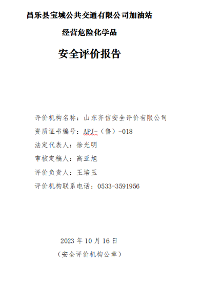 昌乐县宝城公共交通有限公司加油站位于昌乐县大沂路56公里处路西侧,该站成立于2011年11月24日,2019年5月16日取得昌乐县市场监督管理局核发的新营业执照,负责人为马小江。该加油站主要从事汽油和柴油的经营,经营方式为零售。 该站于2021年7月23日取得《成品油零售经营批准证书》(证书编号:鲁油零售证书第3707053007号),有效期自2021年07月23日至2026年07月23日。该站持有的《危险化学品经营许可证》(证书编号:鲁潍危化经[2020]011030号),有效期自2020年11月07日至2023年11月06日。 依据《危险化学品经营许可证管理办法》(国家安监总局令第55号,根据2015年5月27日国家安全监管总局令第79号修正)等法律、法规、文件的要求,危险化学品经营许可证的有效期为3年,有效期满后需要继续从事危险化学品经营活动的,应提出危险化学品经营许可证的延期申请,该加油站为需要更换危险化学品经营许可证的企业。为此,根据《危险化学品安全管理条例》等有关法律、法规规定,该站需更换危险化学品经营许可证,需对其经营条件进行安全评价。 该加油站主营汽油、柴油等成品油,共有加油机6台,单枪加油机5台,双枪加油机1台(加油机呈东西两排布置,东侧一排3台加油机自北向南依次为0#、95#、92#/92#,西侧一排3台加油机自北向南依次为-10#、95#、92#);汽油主要经营92#、95#,柴油冬季经营-10#,其它季节经营0#,无自助加油机。该站设内钢外玻璃纤维增强塑料双层储油罐5台,其中汽油储罐3台,容积均为20m3,柴油储罐2台,容积均为20m3(油罐自东向西依次为0#、92#、95#、92#、-10#),柴油折半后计入加油站储罐总容积为80m3,该站为三级加油站(加气经营设施已废弃,仅对加油站储存设施进行级别的判定)。该站采用自吸式加油工艺,该站加油管道为双层复合管材,管道最低点设检漏点,进油、通气、油气回收系统管道为流体输送用无缝钢管,加油工艺管道全部埋地设置,且不穿越站房。加油机加油软管设置安全拉断阀,底部输油管线设置剪切阀。油罐设有带有高液位报警功能的液位监测报警系统。加油机机体、值班室内紧急切断按钮,仅能通过手动复位。加油机机体设置可燃气体报警器,站房营业室内配备可燃气体报警器信号箱,能够接收可燃气体报警器的报警信号。加油站设有油罐渗漏检测立管、汽油卸油油气回收系统、加油油气回收系统和三次油气回收系统。 |