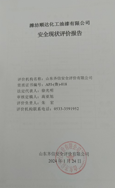 潍坊顺达化工油漆有限公司成立于1994年07月29日,注册地位于山东省潍坊市诸城市相州镇郭家屯村,法定代表人为郭健奎。经营范围包括生产、销售醇酸调和漆;制桶、水性涂料;销售松香、颜料。 该公司于2020年9月16日换发了安全生产许可证,证书编号:(鲁)WH安许证字[2020]070100号,有效期:2020年9月16日至2023年9月15日,许可范围:醇酸调和漆300t/a。 该公司不涉及重点监管的危险化工工艺;不涉及重点监管危险化学品;公司厂区内各单元不构成危险化学品重大危险源。 根据《安全生产许可证条例》(中华人民共和国国务院令第397号,经中华人民共和国国务院令第638号修订,经中华人民共和国国务院令第653号修订)《危险化学品生产企业安全生产许可证实施办法》(国家安全生产监督管理总局令第41号,经国家安全生产监督管理总局令第79号修订,经国家安全生产监督管理总局令第89号修订)的规定,该公司需申请换发安全生产许可证。按照相关法律和法规要求,需要对该公司进行安全评价。鉴于此,潍坊顺达化工油漆有限公司委托山东齐信安全评价有限公司对其生产装置、公用工程、辅助生产设施和安全管理等进行安全现状评价。 我公司接到委托后,成立了评价组,评价人员对该公司生产装置、公用工程、辅助生产设施和安全管理等进行了实地考察,双方确定了安全评价范围,共同收集、整理有关安全生产的各种资料、数据,以及生产中使用的原辅材料、产品的物理性质、化学性质和危险特性等资料。通过分析,确定了该公司存在的危险有害因素,采用安全检查表法、危险度评价法、事故后果模拟分析法等进行了定性、定量分析评价。 根据《危险化学品生产企业安全生产许可证实施办法》(国家安全生产监督管理总局令第41号,经国家安全生产监督管理总局令第79号修订,经国家安全生产监督管理总局令第89号修订)的规定,参照《山东省危险化学品生产企业安全生产许可证实施细则》(鲁安监发[2012]55号)的要求,对该公司生产装置、储存设施、公辅设施和安全管理等方面进行了全面检查,查找出存在的事故隐患,提出了安全对策措施和建议,与被评价单位交换意见,整理、归纳安全评价结果,编制完成了安全现状评价报告。 |