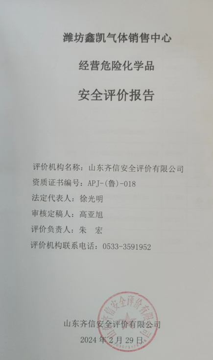 潍坊鑫凯气体销售中心成立于2009年05月07日,并于2019年04月25日取得潍坊市潍城区行政审批服务局核发的新的营业执照,投资人高永强。经营住所潍城区北关街办西七甲张村。危险化学品经营许可证载明的经营范围为丙烯、氮[压缩的或液化的]、二氧化碳[压缩的或液化的]、乙炔、氢、石油气氦[压缩的或液化的]、氧[压缩的或液化的]、氩[压缩的或液化的],其中氮[压缩的或液化的]、二氧化碳[压缩的或液化的]、氧[压缩的或液化的]、氩[压缩的或液化的]有储存经营。 该企业持有的危险化学品经营许可证,有效期自2021年06月05日至2024年06月04日。根据《中华人民共和国安全生产法》、《危险化学品安全管理条例》、《山东省安全生产条例》、《危险化学品经营许可证管理办法》的规定,生产、经营、使用、储存危险化学品的单位应当按照国家规定定期进行安全评价。受潍坊鑫凯气体销售中心的委托,山东齐信安全评价有限公司承担了该企业的安全评价工作。 接受委托后,山东齐信安全评价有限公司成立了评价组。在安全评价的过程中,评价组到现场进行了资料收集、检查,并指出了存在的问题和安全隐患,提出了整改建议。潍坊鑫凯气体销售中心对评价组提出的隐患问题进行了整改,评价组针对企业的整改情况进行了复查。 评价组在对该企业储存经营设施进行现场勘察、审阅企业提供的相关评价资料的基础上,依据有关安全生产法律、法规、规章、标准、规范要求,对该企业危险及有害因素进行了辨识与分析,选用安全检查表进行了符合性评价,有针对性地提出安全对策措施建议,并给出安全评价结论,并编制了安全评价报告。 |