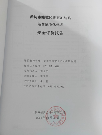 该站于20201028日取得《成品油零售经营批准证书》(证书编号:鲁油零售证书第3707133016号),有效期自20201028日至20251028日。该站持有的《危险化学品经营许可证》(证书编号:鲁潍危化经[2022]002070号),有效期自20221115日至20251114日。该加油站在营业期间未发生安全事故。
