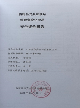 临朐县龙泉加油站位于临朐县城关街办王家楼村东临九路左侧,成立于2009年06月17日,并于2018年06月13日变更营业执照,由临朐县市场监督管理局颁发,类型为个人独资企业,投资人武震,主要负责人为武震。主要从事汽油和柴油的经营,经营方式为零售。 该站持有的《成品油零售经营批准证书》(证书编号:鲁油零售证书第3707093018号),有效期自2021年02月04日至2026年02月04日。该站持有的《危险化学品经营许可证》(证书编号:鲁潍危化经[2021]012133号),有效期自2021年06月20日至2024年06月19日。该加油站在营业期间未发生安全事故。 该加油站现有埋地油罐5台,储罐均为埋地双层SF卧式储罐,单罐容积为40m3汽油罐2台,单罐容积为30m3汽油罐1台,单罐容积为40m3柴油罐2台,柴油折半计入,该加油站油罐总容积为150m3,根据《汽车加油加气加氢站技术标准》(GB50156-2021)第3.0.9条之规定,为二级加油站。 该加油站现有从业人员10人,其中安全管理人员1名。该站已建立了安全生产责任制度、安全管理制度和安全操作规程等,制定了生产安全事故应急救援预案,成立了安全生产领导小组,配备了安全员,主要负责人和安全员取得了安全生产知识和管理能力考核合格证。其他从业人员经本单位三级培训考核合格。 依据《中华人民共和国安全生产法》(中华人民共和国主席令[2002]第70号,根据2021年6月10日中华人民共和国第十三届全国人民代表大会常务委员会第二十九次会议《全国人民代表大会常务委员会关于修改〈中华人民共和国安全生产法〉的决定》修正)、《危险化学品安全管理条例》(国务院令第591号,根据国务院令第645号修订)、《危险化学品经营许可证管理办法》(国家安全生产监督管理总局令第55号,根据安监总局令第79号修订)的要求,危险化学品经营许可证换发需进行安全评价,因此,临朐县龙泉加油站委托山东齐信安全评价有限公司进行经营危险化学品安全评价。 接受委托后,我公司立即成立评价组,在进行资料与标准收集、现场调研、项目资料分析、危险与有害因素分析的基础上,依据《山东省加油站安全评价导则》(鲁安监发[2006]114号),在经营单位的通力合作下,对加油站进行了评价并编写完成了《临朐县龙泉加油站经营危险化学品安全评价报告》。 |
