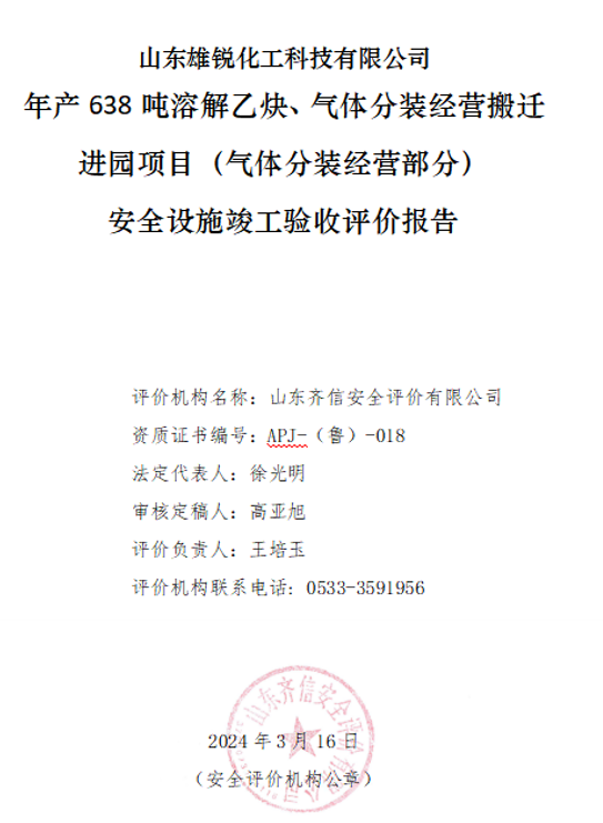 山东雄锐化工科技有限公司成立于2022年2月23日,位于山东省潍坊市寿光市羊口镇羊临路西、菜央子村路南,法定代表人为王宗涛,注册资本为300万元,公司类型为有限责任公司(自然人投资或控股)。经营范围:一般项目:技术服务、技术开发、技术咨询、技术交流、技术转让、技术推广;化工产品销售(不含许可类化工产品);专用化学产品销售(不含危险化学品);五金产品零售;电力电子元器件销售;机械电气设备销售;石油天然气技术服务;石油钻采专用设备销售;新兴能源技术研发;储能技术服务;工业工程设计服务;专业保洁、清洗、消毒服务;安全系统监控服务;消防技术服务;消防器材销售;安防设备销售;普通机械设备安装服务;技术进出口;货物进出口。(除依法须经批准的项目外,凭营业执照依法自主开展经营活动)许可项目:海洋天然气开采;海洋石油开采;建设工程设计;建设工程施工;道路货物运输(不含危险货物)。(依法须经批准的项目,经相关部门批准后方可开展经营活动,具体经营项目以相关部门批准文件或许可证件为准)。该公司现有员工20人,其中专职安全生产管理人员1人。 寿光市雄风气体有限公司成立于2001年10月19日,注册资本壹仟万元整,法定代表人张建名,住所为寿光市菜都路北首,类型为有限责任公司(自然人投资或控股)。 由于市场原因,寿光市雄风气体有限公司于2023年1月8日将年产638吨溶解乙炔、气体分装经营搬迁进园项目整体转让给山东雄锐化工科技有限公司,双方签订了项目转让合同,并于2023年1月10日取得由潍坊市应急管理局出具的“同意项目建设单位变更”的危险化学品建设项目安全审查意见书(详见附件)。 寿光市雄风气体有限公司原有生产基地位于菜都路北首,主要从事溶解乙炔的生产与氮气、氦气、二氧化碳、丙烷、氢气、氩气、一氧化二氮、氧气等的分装经营,距离寿光市区较近,存在安全隐患。根据山东省及潍坊寿光市政府的要求(寿安字[2018]5号),化工生产企业需要进入化工园区。该公司积极响应上级政府的号召,按照寿光市化工企业搬迁进园的要求,加快落实《山东省安全生产“十三五”规划》,积极开展化工产业安全生产转型升级专项行动,把推进化工企业搬迁改造、加快产业升级作为推动新型城镇化和工业化协调发展的重要任务。寿光市雄风气体有限公司年产638吨溶解乙炔、气体分装经营搬迁进园项目(气体分装经营部分)建在寿光羊口化工产业园,羊口镇菜央子村进村路与羊临路交叉口西南角。 在此背景下,为响应国家、省、市化工生产企业转型升级、提质增效的号召,该公司依托先进的技术优势,建设“年产638吨溶解乙炔、气体分装经营搬迁进园项目”。“年产638吨溶解乙炔、气体分装经营搬迁进园项目”于2019年6月3日取得山东省建设项目备案证明,项目代码:2019-370700-26-03-026734。本次评价的对象为:年产638吨溶解乙炔、气体分装经营搬迁进园项目(气体分装经营部分),以下内容简称该项目。 该项目分装的主要物料氦[压缩的和液化的]、氮[压缩的和液化的]、二 氧化碳[液化的]、丙烷、氢、氩[压缩的和液化的]、一氧化二氮[液化的]、氧 [压缩的和液化的]等属于《危险化学品目录(2022调整版)》中的危险化学品, 因此,该项目属于危险化学品建设项目(带有储存设施的危险化学品经营项目)。 该项目《设立安全评价报告》由山东筑本安全技术咨询有限公司编制,2020年5月18日取得潍坊市应急局出具的危险化学品建设项目安全审查意见书:潍应急危化项目审字[2020]6013号;《安全设施设计专篇》由山东富海石化工程有限公司编制,于2021年1月26日取得《危险化学品建设项目安全审查意见书》,编号:潍应急危化项目审字[2021]9002号。 该项目于2022年5月开工建设,2022年11月竣工,施工图设计单位为山东富海石化工程有限公司,土建施工单位为寿光源东建筑工程有限公司,设备安装施工单位为山东益通安装有限公司,土建施工监理单位为鲁焱工程技术咨询有限公司,设备安装施工监理单位为中天昊建设管理集团股份有限公司。 该项目涉及重点监管危险化学品为氢气,该项目不涉及重点监管的化工工艺,该项目储存设施均未构成危险化学品重大危险源。 |
