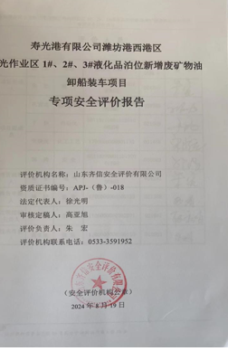 寿光港有限公司位于渤海湾南岸、小清河入海口处,公司成立于2011年8月,隶属于山东港口集团旗下的山东渤海湾港口集团有限公司,公司经营范围包括:码头及港口设施服务、货物装卸、仓储服务、危险货物装卸服务、港口拖轮服务、船舶港口服务、港口设施、设备及机械的租赁和维修服务。目前,公司总资产12.7亿,在册员工62人,管理运营3个液化品泊位、4个散杂货泊位和2个集装箱泊位。作业货种主要有汽油、柴油、燃料油、沥青、铝矾土、玉米、建材等,其中液化品码头作业方式主要为成品油装卸船作业,燃料油、炭黑油、沥青等高闪点货种卸船装车作业,柴油装车作业。寿光港港区液化品泊位后方建有成品库区单位寿光龙海油品仓储有限公司(库容11.2万立方米,7000m³成品油储罐16座)和润滑油库区单位潍坊依航仓储有限公司(库容5.1万立方米,1500m³储罐10座,3000m³储罐12座)。目前,码头作业货种为汽油、柴油、石脑油、煤油、溶剂油、燃料油、炭黑油、重油、石蜡油、沥青、润滑油等。 根据公司业务发展需要,寿光港有限公司依托现有的配套储运设施,在现有的1#、2#、3#液化品泊位新增废矿物油卸船装车。新增货种后,该公司周边环境、总图、仓储能力、设备设施、公用工程等均不发生变化。 根据《中华人民共和国安全生产法》(国家主席令[2021]第88号)、《中华人民共和国港口法》(国家主席令[2018]第23号修订)、《港口经营管理规定》(交通运输部令[2020]第21号)、《港口危险货物安全管理规定》(中华人民共和国交通运输部令2023年第8号修订)等有关规定,受寿光港有限公司的委托,山东齐信安全评价有限公司对其寿光港有限公司潍坊港西港区寿光作业区1#、2#、3#液化品泊位新增废矿物油卸船装车项目进行专项安全评价。 我公司接受委托后,成立了评价组,评价人员进行了实地考察,共同收集、整理有关安全生产的各种资料、数据,根据《安全评价通则》(AQ8001-2007)、《危险货物港口作业安全评价导则》(JT/T845-2020)等标准规范的相关要求,在对该公司相关资料充分了解和分析的基础上,根据专项安全评价工作的有关要求编制了安全评价检查表,对该项目的安全措施及设施进行了检查,查找出该项目存在的安全隐患,提出了安全对策措施和建议,与被评价单位交换意见,整理、归纳安全评价结论,编制完成了专项安全评价报告。 |