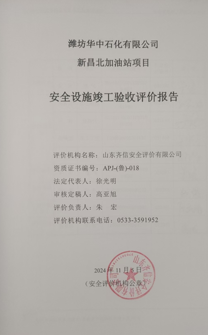 潍坊华中石化有限公司新昌北加油站成立于2024年01月17日,注册地位于山东省潍坊高新区新昌街道寨子社区健康东街高新二路东1公里路北1幢108,负责人为王树振。经营范围包括一般项目:石油制品销售(不含危险化学品);润滑油销售;洗车服务;汽车拖车、求援、清障服务;日用百货销售。(除依法须经批准的项目外,凭营业执照依法自主开展经营活动)。 潍坊华中石化有限公司于2022年7月29日取得了由潍坊高新技术产业开发区科技统计局颁发的《关于对山东壳牌石油有限公司潍坊清池街北加油站原址改建的申请批复》,潍坊华中石化有限公司对山东壳牌石油有限公司潍坊清池街北加油站进行原址改建。改建后加油站名称:潍坊华中石化有限公司新昌北加油站。 该加油站占地面积3072㎡,在原址进行改建,新建站房一座(砖混结构,占地面积140㎡,建筑面积140㎡)、罩棚一座(钢结构,建筑面积360㎡)、加油机4台[六枪三油品(柴油、92#汽油、95#汽油)加油机1台、六枪三油品(柴油、92#汽油、98#汽油)加油机1台、四枪双油品(92#汽油、95#汽油)加油机1台、四枪双油品(92#汽油、98#汽油)加油机1台]、承重式储罐区1座(内设埋地油罐6个:30m³的92#汽油储罐2个、30m³的95#汽油储罐1个、30m³的98#汽油储罐1个、30m³柴油储罐2个)、丙类储存间一座、洗车机一台,柴油折半计算,总容积为150m³,为二级加油站;设有卸油油气回收系统、加油油气回收系统和三次油气回收系统。 该加油站新建项目的设立安全评价单位为山东实华安全技术有限公司,安全设施设计单位为山东鸿运工程设计有限公司,施工单位为兴润建设集团有限公司。该项目于2024年5月7日开工建设,2024年8月27日建成。 根据《中华人民共和国安全生产法》(中华人民共和国主席令[2002]第70号,根据2021年6月10日中华人民共和国第十三届全国人民代表大会常务委员会第二十九次会议《全国人民代表大会常务委员会关于修改〈中华人民共和国安全生产法〉的决定》修正)、《危险化学品建设项目安全监督管理办法》(国家安全生产监督管理总局令第45号,总局令79号修订)、《建设项目安全设施“三同时”监督管理办法》(国家安全生产监督管理总局令第36号,总局令77号修订)、《山东省危险化学品建设项目安全监督管理办法实施细则》(鲁安监发 [2018]17 号)的规定,在该加油站新建项目竣工后,应对其设备、设施及管理状况进行评价,为该加油站新建项目安全验收提供依据。为此,潍坊华中石化有限公司委托山东齐信安全评价有限公司对“潍坊华中石化有限公司新昌北加油站”进行安全设施竣工验收评价。 我公司接受委托后,立即成立了由专业评价师组成的评价小组,依据安全设施竣工验收评价的工作程序,在对项目相关资料充分了解和分析的基础上,根据安全设施竣工验收评价工作的有关要求,编制了安全设施竣工验收评价工作计划书,并结合该项目的特征,编制了安全设施竣工验收评价检查表,进行了现场调研,对该项目的安全措施及设施进行了检查,通过对该项目相关资料的汇总、分析和处理,对该项目进行了安全设施竣工验收评价,并编制完成了安全设施竣工验收评价报告书。 |