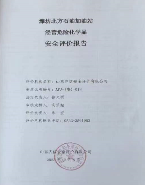 潍坊北方石油加油站原名潍坊市坊子区穆村供销合作社金利加油站,位于潍坊市坊子区九龙街办杨庄村东。该站成立于2023年11月20日,取得潍坊市坊子区行政审批服务局颁发的营业执照。该加油站经营范围: 一般项目:润滑油销售。(除依法须经批准的项目,凭营业执照依法自主开展经营活动)。类型为个人独资企业。 该加油站现有埋地油罐4台,储罐均为埋地双层SF卧式储罐,汽油罐3台(单罐容积为30m32台,单罐容积为15m31台),柴油罐1台(单罐容积为15m3),柴油折半计入,该加油站油罐总容积为82.5m3,根据《汽车加油加气加氢站技术标准》(GB50156-2021)第3.0.9条之规定,为三级加油站。 该加油站现有职工6人,其中站长1人,安全员1人,站长和安全员已通过安全生产知识和管理能力考核合格,并取证;其他从业人员按照国家有关规定,经安全教育和培训并考核合格。 加油站具有成品油零售经营批准证书和危险化学品经营许,主要从事汽油、柴油零售,依据《危险化学品经营许可证管理办法》第十四条已经取得经营许可证的企业变更企业名称、主要负责人、注册地址或者危险化学品的储存设施及其监控措施的,应当自变更之日起20个工作日内,向本办法第五条规定的发证机关提出书面变更申请,并提交资料。第十八条规定经营许可证的有效期为3年。有效期满后,企业需要继续从事危险化学品经营活动的,应当在经营许可证有效期满三个月前,向本办法第五条规定的发证机关提出经营许可证的延期申请,并提交延期申请及本办法第九条规定的申请文件、资料。企业提出经营许可证延期申请时,可以同时提交变更申请,并向发证机关提交相关文件、资料,因此,潍坊北方石油加油站委托山东齐信安全评价有限公司进行经营危险化学品安全评价。 接受委托后,山东齐信安全评价有限公司成立评价组,在进行资料与标准收集、现场调研、项目资料分析、危险与有害因素分析的基础上,依据《安全评价通则》(AQ8001-2007)、《山东省加油站安全评价导则》(鲁安监发〔2006〕114号),通过对该加油站安全管理、站址选择及总平面布置、加油工艺及设施、其他设施等方面的审查,选择相应的评价方法对其危险、有害因素进行辨识和评价,编写完成了《潍坊北方石油加油站安全评价报告》。 |