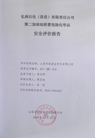 弘润石化(昌邑)有限责任公司第二加油站位于山东省潍坊市昌邑市都昌街道昌进西路北北海路西,成立于2025年03月30日,取得昌邑市行政审批服务局核发的营业执照,类型为有限责任公司分公司(非自然人投资或控股的法人独资),负责人潘维明。经营范围一般项目:化工产品销售(不含许可类化工产品)。(除依法须经营批准的项目外,凭营业执照依法自主开展经营活动)。 该加油站前身为昌邑市昌进加油站,昌邑市昌进加油站始建于2002年6月,隶属于潍坊昌进织造有限公司,于2002年6月开始运营,2004年2月取得建筑工程消防验收意见书,2002年6月至2016年1月一直由郝建生租赁经营。2006年,潍坊昌进织造有限公司破产,其名下资产包括昌邑市昌进加油站转入山东昌邑石化有限公司。山东昌邑石化有限公司于2007年办理了该加油站的土地使用证。2008年郝建生与山东昌邑石化有限公司签订了加油站租赁合同;2016年,山东昌邑石化有限公司将该加油站收回,双方签订了《协议书》,2016年8月3日该加油站更名为山东昌邑石化有限公司第二加油站,2024年9月20日,山东昌邑石化有限公司破产,2025年3月28日山东昌邑石化有限公司破产财产所有权归属于弘润石化(昌邑)有限责任公司,包括山东昌邑石化有限公司第二加油站,2025年03月30日该加油站更名为弘润石化(昌邑)有限责任公司第二加油站,营业执照和危险化学品经营许可证、成品油零售许可证随后进行了变更。 该站持有的《成品油零售经营批准证书》(证书编号:鲁油零售证书第3707083025号),有效期自2025年4月10日至2030年4月10日;《危险化学品经营许可证》(证书编号:37070013202500037号),有效期自2022年8月1日至2025年7月31日。该站在营业期间未发生安全事故。 该加油站现有埋地油罐5台(单罐容积均为30m3,其中2台闲置,三台在用,3台在用储罐中有2台汽油罐,1台柴油罐),储罐均为埋地双层SF卧式储罐,柴油折半计入,该加油站油罐总容积为75m3,根据《汽车加油加气加氢站技术标准》(GB50156-2021)第3.0.9条之规定,为三级加油站。 该加油站现有从业人员6人,设有站长1人,安全管理人员1名。该站已建立了安全生产责任制度、安全管理制度和安全操作规程等,制定了生产安全事故应急救援预案,成立了安全生产领导小组,配备了安全员,主要负责人和安全员取得了安全生产知识和管理能力考核合格证。其他从业人员经本单位三级培训考核合格。 依据《中华人民共和国安全生产法》(中华人民共和国主席令[2002]第70号,根据2021年6月10日中华人民共和国第十三届全国人民代表大会常务委员会第二十九次会议《全国人民代表大会常务委员会关于修改〈中华人民共和国安全生产法〉的决定》修正)、《危险化学品安全管理条例》(国务院令第591号,根据国务院令第645号修订)、《危险化学品经营许可证管理办法》(国家安全生产监督管理总局令第55号,根据安监总局令第79号修订)的要求,公司更换名称、主要负责人,危险化学品经营许可证换发需进行安全评价,因此,弘润石化(昌邑)有限责任公司第二加油站委托山东齐信安全评价有限公司进行经营危险化学品安全评价。 接受委托后,我公司立即成立评价组,在进行资料与标准收集、现场调研、项目资料分析、危险与有害因素分析的基础上,依据《山东省加油站安全评价导则》(鲁安监发[2006]114号),在经营单位的通力合作下,对加油站进行了评价并编写完成了《弘润石化(昌邑)有限责任公司第二加油站经营危险化学品安全评价报告》。 |