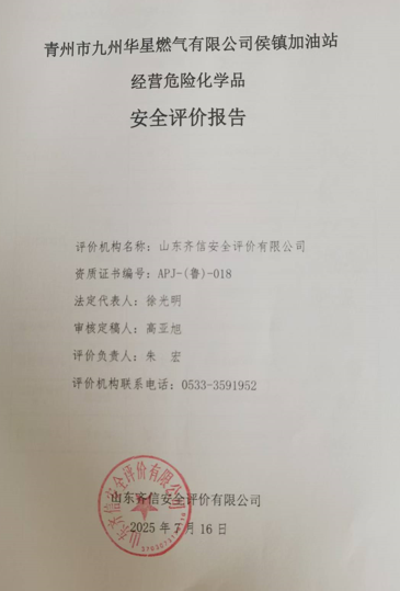 青州市九州华星燃气有限公司侯镇加油站成立于2025年06月18日,注册地位于山东省潍坊市寿光市侯镇镇南昌大路与034乡道交叉口南650米路东,负责人为徐新明。经营范围包括一般项目:专用化学产品销售(不含危险化学品);洗车服务;汽车装饰用品销售;食品销售(仅销售预包装食品);租赁服务(不含许可类租赁服务);仓储设备租赁服务。(除依法须经批准的项目外,凭营业执照依法自主开展经营活动) 2025年6月5日,青州市九州华星燃气有限公司与中国石化销售股份有限公司山东潍坊石油分公司签订了《山东潍坊寿光第二十七加油站租赁协议》,租赁期限自2025年6月15日至2033年7月 14日。 该加油站现有埋地承重储油罐3台,其中单罐容积为20m3的汽油罐2台,单罐容积为20m3的柴油罐1台。根据《汽车加油加气加氢站技术标准》(GB50156-2021)表3.0.9条的规定,柴油罐容积折半计入油罐总容积计算,该加油站总容积计50m3,加油站等级为三级。 中国石化销售股份有限公司山东潍坊寿光第二十七加油站2025年06月20日换发了危险化学品经营许可证,证书编号为:37070013202500098,有效期自2022年12月25日至2025年12月24日;于2025年6月20日换发了成品油零售经营许可证(证书编号:鲁油零售证书第3707123043号),有效期自2021年7月25日至2026年7月23日。 该加油站因变更企业名称、负责人,需换发新的危险化学品经营许可证,依据《中华人民共和国安全生产法》(中华人民共和国主席令[2002]第70号,根据2021年6月10日中华人民共和国第十三届全国人民代表大会常务委员会第二十九次会议《全国人民代表大会常务委员会关于修改〈中华人民共和国安全生产法〉的决定》修正)、《危险化学品安全管理条例》(国务院令第591号,根据国务院令第645号修订)、《危险化学品经营许可证管理办法》(国家安全生产监督管理总局令第55号,根据安监总局令第79号修订)的要求,危险化学品经营许可证换发需进行安全评价,因此,青州市九州华星燃气有限公司侯镇加油站委托山东齐信安全评价有限公司进行经营危险化学品安全评价。 接受委托后,山东齐信安全评价有限公司成立评价组,在进行资料与标准收集、现场调研、项目资料分析、危险与有害因素分析的基础上,依据《安全评价通则》(AQ8001-2007)、《山东省加油站安全评价导则》(鲁安监发〔2006〕114号),通过对该加油站安全管理、站址选择及总平面布置、加油工艺及设施、其他设施等方面的审查,选择相应的评价方法对其危险、有害因素进行辨识和评价,编写完成了《青州市九州华星燃气有限公司侯镇加油站安全评价报告》。 |