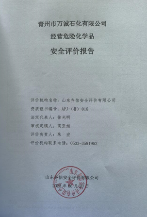 青州市万诚石化有限公司位于山东省潍坊市青州市弥河镇郝家村西侧,成立于2022年8月31日,2023年2月15日取得青州市行政审批服务局核发的营业执照,类型为有限责任公司(自然人投资或控股),法定代表人为于建猛。主要从事汽油和柴油零售。 该加油站原名青州市海龙加油站,因经营需要于2013年租赁给山东大唐油气有限公司经营(命名为山东大唐油气有限公司潍坊第十九加油站),2022年8月因合同到期,青州市海龙加油站收回加油站经营权;于2022年6月与青州市万诚石化有限公司签署了加油站合作协议,由青州市万诚石化有限公司经营,加油站更名为青州市万诚石化有限公司。 该公司持有的《成品油零售经营批准证书》(证书编号:鲁油零售证书第3707113017号),有效期自2022年10月24日至2027年10月24日。该站持有的《危险化学品经营许可证》(证书编号:鲁潍危化经[2022]007100号),有效期自2022年09月28日至2025年09月27日。该公司在营业期间未发生安全事故。 该公司现有埋地油罐4台,储罐均为埋地双层SF卧式储罐,汽油罐2台,柴油罐2台,单罐容积均为30m3,柴油折半计入,该加油站油罐总容积为90m3,根据《汽车加油加气加氢站技术标准》(GB50156-2021)第3.0.9条之规定,为三级加油站。 该公司现有从业人员5人,其中安全管理人员1名。该站已建立了安全生产责任制度、安全管理制度和安全操作规程等,制定了生产安全事故应急救援预案,成立了安全生产领导小组,配备了安全员,主要负责人和安全员取得了安全生产知识和管理能力考核合格证。其他从业人员经本单位三级培训考核合格。 依据《中华人民共和国安全生产法》(中华人民共和国主席令[2002]第70号,根据2021年6月10日中华人民共和国第十三届全国人民代表大会常务委员会第二十九次会议《全国人民代表大会常务委员会关于修改〈中华人民共和国安全生产法〉的决定》修正)、《危险化学品安全管理条例》(国务院令第591号,根据国务院令第645号修订)、《危险化学品经营许可证管理办法》(国家安全生产监督管理总局令第55号,根据安监总局令第79号修订)的要求,危险化学品经营许可证换发需进行安全评价,因此,青州市万诚石化有限公司委托山东齐信安全评价有限公司进行经营危险化学品安全评价。 接受委托后,我公司立即成立评价组,在进行资料与标准收集、现场调研、项目资料分析、危险与有害因素分析的基础上,依据《山东省加油站安全评价导则》(鲁安监发[2006]114号),在经营单位的通力合作下,对加油站进行了评价并编写完成了《青州市万诚石化有限公司经营危险化学品安全评价报告》。 |