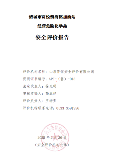 诸城市贾悦海铭石化有限公司位于山东省潍坊市诸城市贾悦镇西徐宋村南86米,该站成立于2024年12月30日,2024年12月30日取得诸城市市场监督管理局核发的新的营业执照,法定代表人为窦海铭。该加油站主要从事汽油和柴油的经营,经营方式为零售。 该站于2021年7月22日取得《成品油零售经营批准证书》(证书编号:鲁油零售证书第3707073025号),有效期为2021年7月22日至2026年7月22日。该站持有的《危险化学品经营许可证》(证书编号:鲁潍危化经[2022]006007号),有效期自2023年3月15日至2026年3月14日。 该加油站因变更经营主体,变更了企业名称、法定代表人,需换发新的危险化学品经营许可证。依据《危险化学品经营许可证管理办法》(国家安监总局令第55号,根据2015年5月27日国家安全监管总局令第79号修正)以及等法律、法规、文件的要求,需要按照相关法律法规的要求进行安全评价。 该加油站主营汽油、柴油等成品油,共有加油机4台,其中92#单枪加油机1台,95#单枪加油机1台,柴油双枪加油机2台,柴油冬季经营-10#,其它季节经营0#,无自助加油机。该站设埋地卧式内钢外玻璃纤维增强塑料双层储油罐4台,汽油储罐2台,容积均为30m3,柴油储罐2台,容积均为30m3(由南向北依次是0#、92#、95#、 0#),柴油折半后计入,储罐总容积为90m3,该站为三级加油站。该站采用自吸式加油工艺,该站加油管道为双层复合管材,卸油、通气、油气回收系统管道为流体输送用无缝碳钢管材,加油工艺管道全部埋地设置,且不穿越站房。加油机加油软管设置安全拉断阀,油罐设有带有高液位报警功能的液位监测报警系统等信息化设备。加油机机体、值班室内设置紧急切断按钮,并实现手动复位。加油站设有油罐渗漏检测立管、汽油卸油油气回收系统、加油油气回收系统。 |