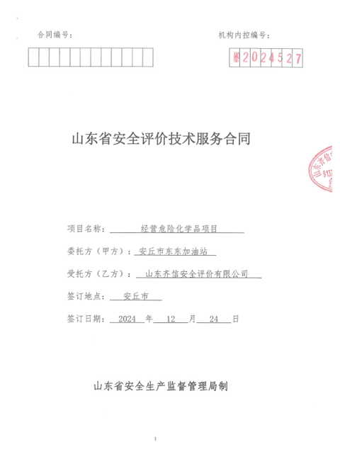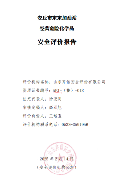 安丘市东东加油站位于安丘市景芝镇临浯东路南侧,该站成立于2012年8月24日,2024年12月18日取得安丘市行政审批服务局核发的新的营业执照,投资人为张家豪。该加油站主要从事汽油和柴油的经营,经营方式为零售。 该站于2021年8月11日取得《成品油零售经营批准证书》(证书编号:鲁油零售证书第3707061012号),有效期为2021年8月11日至2026年8月11日。该站持有的《危险化学品经营许可证》(证书编号:鲁潍危化经[2022]008048号),有效期自2022年11月06日至2025年11月05日。 该加油站因变更经营主体,变更了企业名称、法定代表人,需换发新的危险化学品经营许可证。依据《危险化学品经营许可证管理办法》(国家安监总局令第55号,根据2015年5月27日国家安全监管总局令第79号修正)以及等法律、法规、文件的要求,需要按照相关法律法规的要求进行安全评价。 该加油站主营汽油、柴油等成品油,共有加油机4台,其中92#双枪加油机1台,柴油单枪加油机1台,95#单枪加油机1台,停用加油机1台,柴油冬季经营-10#,其它季节经营0#,无自助加油机。该站设埋地卧式内钢外玻璃纤维增强塑料双层储油罐3 台,汽油储罐2台,容积均为20m3,柴油储罐1台,容积为20m3(由南向北依次是0#、92#、95# ),柴油折半后计入,储罐总容积为50m3,该站为三级加油站。该站采用自吸式加油工艺,该站加油管道为双层复合管材,卸油、通气、油气回收系统管道为流体输送用无缝碳钢管材,加油工艺管道全部埋地设置,且不穿越站房。加油机加油软管设置安全拉断阀,油罐设有带有高液位报警功能的液位监测报警系统等信息化设备。加油机机体、值班室内设置紧急切断按钮,并实现手动复位。加油站设有油罐渗漏检测立管、汽油卸油油气回收系统、加油油气回收系统。 |