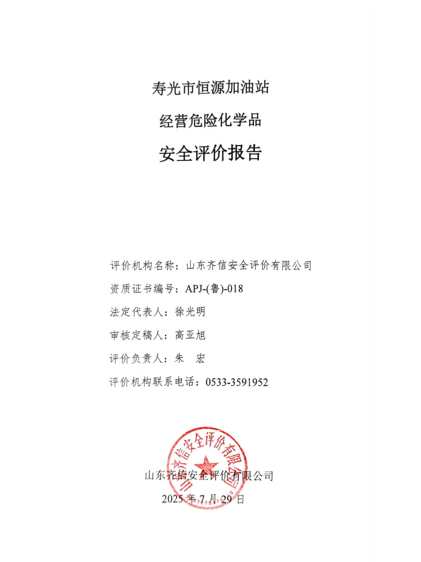 寿光市恒源加油站成立于2009年02月25日,注册地位于山东省潍坊市寿光市双王城生态经济园区牛头镇村村南,法定代表人为马永杰。经营范围包括零售:汽油(有效期限以许可证为准)、柴油、润滑油(依法须经批准的项目,经相关部门批准后方可开展经营活动)。 该加油站现有4台储罐,其中汽油罐2台,柴油罐2台 ,具体为92#汽油双层罐1个,容积为10m3,95#汽油双层罐1个,容积10m3,柴油双层罐2个,容积分别为10m3,柴油罐随季节调整品种。柴油折半计入,该站储罐总容积为30m3,根据《汽车加油加气加氢站技术标准》(GB50156-2021)第3.0.9条之规定,为三级加油站。 因《危险化学品目录(2015版)》(应急管理部 工业和信息化部 公安部 生态环境部 交通运输部 农业农村部 卫生健康委 市场监管总局 铁路局 民航局 公告[2022]第8号)将“1674柴油[闭杯闪点≤60℃]”调整为“1674柴油”),2023年11月23日换发了危险化学品经营许可证,证书编号为:鲁潍危化经[2022] 005144号,有效期至2025年11月20日;于2024年1月25日换发了成品油零售经营许可证(证书编号:鲁油零售证书第3707123031号),有效期至2029年1月25日。 依据《中华人民共和国安全生产法》(中华人民共和国主席令[2002]第70号,根据2021年6月10日中华人民共和国第十三届全国人民代表大会常务委员会第二十九次会议《全国人民代表大会常务委员会关于修改〈中华人民共和国安全生产法〉的决定》修正)、《危险化学品安全管理条例》(国务院令第591号,根据国务院令第645号修订)、《危险化学品经营许可证管理办法》(国家安全生产监督管理总局令第55号,根据安监总局令第79号修订)的要求,危险化学品经营许可证换发需进行安全评价,因此,寿光市恒源加油站委托山东齐信安全评价有限公司进行经营危险化学品安全评价。 接受委托后,山东齐信安全评价有限公司成立评价组,在进行资料与标准收集、现场调研、项目资料分析、危险与有害因素分析的基础上,依据《安全评价通则》(AQ8001-2007)、《山东省加油站安全评价导则》(鲁安监发〔2006〕114号),通过对该加油站安全管理、站址选择及总平面布置、加油工艺及设施、其他设施等方面的审查,选择相应的评价方法对其危险、有害因素进行辨识和评价,编写完成了《寿光市恒源加油站安全评价报告》。 |