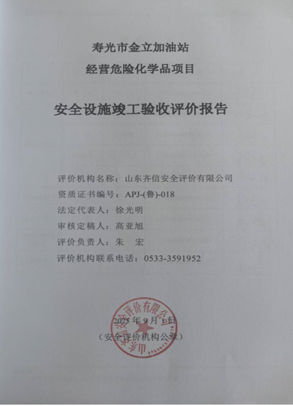 寿光市金立加油站成立于2023年04月06日,注册地位于山东省潍坊市寿光市营里镇南大路北侧,投资人为吴立友。经营范围:许可项目:成品油零售(不含危险化学品)。(依法须经批准的项目,经相关部门批准后方可开展经营活动,具体经营项目以相关部门批准文件或许可证件为准) 该加油站占地面积2475.5㎡,在原址进行改建,利旧原寿光市金立燃气有限公司CNG加气站(以下统称原加气站)站房1座(砖混结构,占地面积 144 m2,建筑面积 144 m2 )、原加气站罩棚1座(钢结构,建筑面积 291.2 m2 ,水平投影面积 582.4 m2 )。原加气站在 2015年12月25日验收合格并取得了《建设工程消防验收意见书》(潍公消验字[2015]第0449号)(该消防验收意见书中站房建筑面积125平方米为站房室内面积,罩棚建筑面积750平方米包含该加油站罩棚建筑面积和原加气站液压撬罩棚建筑面积)。该加油站新增加油机 4台(双枪汽油加油机2台、双枪柴油加油机 2台)、新增储罐区 1 座(内设埋地油罐 4个:50m3 的 92#汽油储罐 1个、50m3 的 95#汽油储罐 1个、50m3 柴油储罐 2个)。按柴油折半后计算,该加油站储罐总容积为150m³,为二级加油站。设有卸油油气回收系统、加油油气回收系统和三次油气回收系统。 该加油站新建项目的设立安全评价单位为山东实华安全技术有限公司,安全设施设计单位为山东众智工程设计有限公司,土建施工单位为东营市信誉建设工程有限责任公司,站房、罩棚装修装饰、设备安装为天津祥瑞达丰建筑工程有限公司。该项目于2025年3月开工建设,2025年7月底建成。 根据《中华人民共和国安全生产法》(中华人民共和国主席令[2002]第70号,根据2021年6月10日中华人民共和国第十三届全国人民代表大会常务委员会第二十九次会议《全国人民代表大会常务委员会关于修改〈中华人民共和国安全生产法〉的决定》修正)、《危险化学品建设项目安全监督管理办法》(国家安全生产监督管理总局令第45号,总局令79号修订)、《建设项目安全设施“三同时”监督管理办法》(国家安全生产监督管理总局令第36号,总局令77号修订)、《山东省危险化学品建设项目安全监督管理办法实施细则》(鲁安监发 [2018]17 号)的规定,在该加油站新建项目竣工后,应对其设备、设施及管理状况进行评价,为该加油站新建项目安全验收提供依据。为此,寿光市金立加油站委托山东齐信安全评价有限公司对“寿光市金立加油站”进行安全设施竣工验收评价。 我公司接受委托后,立即成立了由专业评价师组成的评价小组,依据安全设施竣工验收评价的工作程序,在对项目相关资料充分了解和分析的基础上,根据安全设施竣工验收评价工作的有关要求,编制了安全设施竣工验收评价工作计划书,并结合该项目的特征,编制了安全设施竣工验收评价检查表,进行了现场调研,对该项目的安全措施及设施进行了检查,通过对该项目相关资料的汇总、分析和处理,对该项目进行了安全设施竣工验收评价,并编制完成了安全设施竣工验收评价报告书。 |