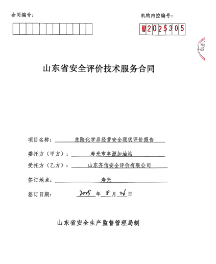 寿光市丰源加油站成立于2000年04月03日,注册地位于寿光市洛城镇府前潍高路北侧,法定代表人为董瑞之。经营范围包括许可项目:危险化学品经营;成品油零售。(依法须经批准的项目,经相关部门批准后方可开展经营活动,具体经营项目以相关部门批准文件或许可证件为准)一般项目:洗车服务;化工产品销售(不含许可类化工产品);润滑油销售;针纺织品销售;日用百货销售;五金产品零售;玩具销售;家用电器销售。(除依法须经批准的项目外,凭营业执照依法自主开展经营活动)(依法须经批准的项目,经相关部门批准后方可开展经营活动)。 该加油站现有4台储罐,其中汽油罐2台,柴油罐2台 ,具体为95#汽油双层罐1个,容积12m3,92#汽油双层罐1个,容积为30m3,柴油双层罐2个,容积分别为40m3,柴油罐随季节调整品种。柴油折半计入,该站储罐总容积为82m3,根据《汽车加油加气加氢站技术标准》(GB50156-2021)第3.0.9条之规定,为三级加油站。 该站2022年11月08日换发了危险化学品经营许可证,证书编号为:鲁潍危化经[2022] 005173号,有效期至2026年01月09日;于2021年02月21日换发了成品油零售经营许可证(证书编号:鲁油零售证书第3707123052号),有效期至2026年02月24日。 依据《中华人民共和国安全生产法》(中华人民共和国主席令[2002]第70号,根据2021年6月10日中华人民共和国第十三届全国人民代表大会常务委员会第二十九次会议《全国人民代表大会常务委员会关于修改〈中华人民共和国安全生产法〉的决定》修正)、《危险化学品安全管理条例》(国务院令第591号,根据国务院令第645号修订)、《危险化学品经营许可证管理办法》(国家安全生产监督管理总局令第55号,根据安监总局令第79号修订)的要求,危险化学品经营许可证换发需进行安全评价,因此,寿光市丰源加油站委托山东齐信安全评价有限公司进行经营危险化学品安全评价。 接受委托后,山东齐信安全评价有限公司成立评价组,在进行资料与标准收集、现场调研、项目资料分析、危险与有害因素分析的基础上,依据《安全评价通则》(AQ8001-2007)、《山东省加油站安全评价导则》(鲁安监发〔2006〕114号),通过对该加油站安全管理、站址选择及总平面布置、加油工艺及设施、其他设施等方面的审查,选择相应的评价方法对其危险、有害因素进行辨识和评价,编写完成了《寿光市丰源加油站安全评价报告》。 |