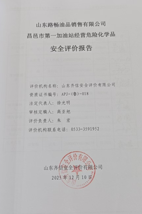 山东路畅油品销售有限公司昌邑市第一加油站安全评价报告