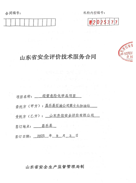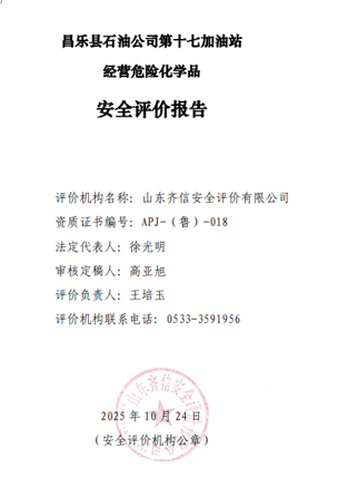 昌乐县石油公司第十七加油站位于山东省潍坊市昌乐县营丘镇泥沟子村北潍临路西侧,该站成立于2022年11月04日,企业类型为集体分支机构(非法人),2022年11月30日取得昌乐县行政审批服务局核发的营业执照,负责人为孔祥民。该加油站主要从事汽油和柴油的经营,经营方式为零售。 该站于2023年3月15日取得《成品油零售经营批准证书》,有效期为2023年3月15日至2028年3月15日(证书编号:鲁油零售证书第3707053095号)。该站持有的《危险化学品经营许可证》(证书编号:鲁潍危化经[2022]011125号),有效期自2022年11月25日至2025年11月24日。该加油站在营业期间未发生安全事故。 依据《危险化学品经营许可证管理办法》(国家 安监总局令第55号,根据2015年5月27日国家安全监管总局令第79号修正)及《山东省危险化学品经营许可证实施细则》(鲁应急发〔2025〕4号)等法律、法规、文件的要求,危险化学品经营许可证的有效期为3年,有效期满后需要继续从事危险化学品经营活动的,应提出危险化学品经营许可证的延期申请,该加油站为需要更换危险化学品经营许可证的企业。为此,根据《危险化学品安全管理条例》等有关法律、法规规定,该站需更换危险化学品经营许可证,需对其经营条件进行安全评价。 自上次取得《危险化学品经营许可证》以来,加油站增设地磅,位于加油区东南侧,加油站周边环境、加油工艺、危险化学品的储存能力未发生变化,营业期间未发生过安全事故。 该加油站现有从业人员4人,其中安全管理人员1名,该站已建立了安全生产责任制度、安全管理制度和安全操作规程等,制定了生产安全事故应急救援预案,成立了安全生产领导小组,配备了安全员,主要负责人和安全员取得了安全生产知识和管理能力考核合格证。其他从业人员经本单位培训考核合格。 该加油站主营汽油、柴油等成品油,共有双枪加油机6台(停用一支汽油加油枪和一支柴油加油枪)。加油机呈东南和西北两排布置,东南侧一排为4台92#/柴油双枪双油品加油机,西北侧一排为2台92#/95#双枪加油机;柴油冬季经营-10#,其它季节经营0#,无自助加油机。该站埋地罐区为承重式埋地罐区。设内钢外玻璃纤维增强塑料双层储油罐4台,其中汽油储罐2台,容积均为30m3,柴油储罐2台,容积均为30m3(油罐自东北向西南依次为92#、95#、柴油、柴油),柴油折半后计入加油站储罐总容积为90m3,该站为三级加油站。该站采用潜油泵式加油工艺,加油管道为双层复合管材,管道最低点设检漏点,进油管道为内钢外玻璃纤维增强塑料双层管道,通气、油气回收系统管道为流体输送用无缝碳钢管材,加油工艺管道全部埋地设置,且不穿越站房。加油机加油软管设置安全拉断阀,加油机底部设置剪切阀;油罐设有带有高液位报警功能的液位监测报警系统等信息化设备。加油机机体、值班室内设置紧急切断按钮,并实现手动复位。加油站设有渗漏检测系统、汽油卸油油气回收系统、加油油气回收系统和三次油气回收系统。 |