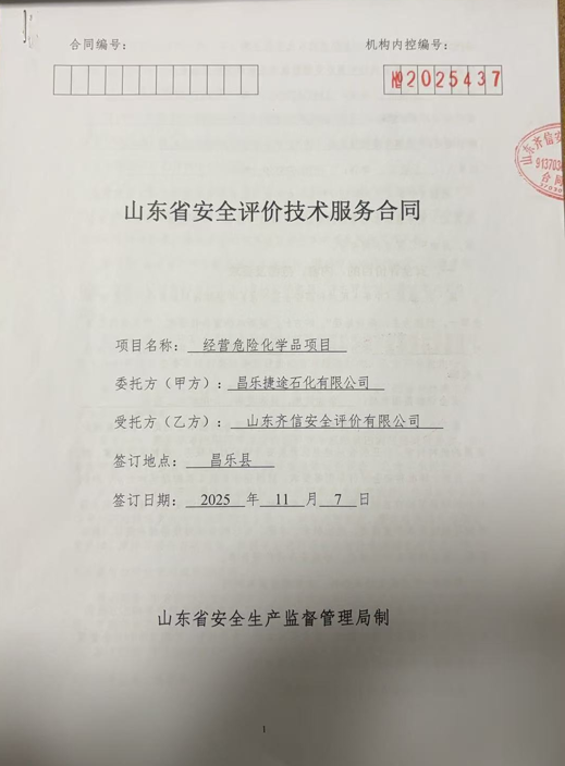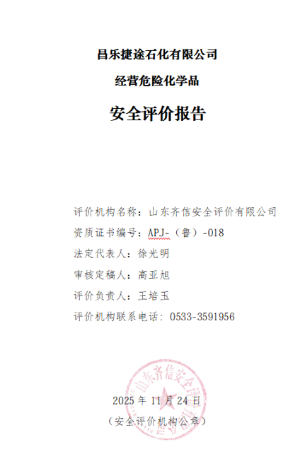 昌乐捷途石化有限公司位于山东省潍坊市昌乐县鄌郚镇包庄村南500米路东,始建于2002年,2025年10月13日取得昌乐县市场监督管理局核发的新的营业执照,法定代表人为宋福诚。该加油站主要从事汽油和柴油的经营,经营方式为零售。 该站始建于2002年,其前身为昌乐县包庄农机加油站。2017年加油站名称变更为昌乐县鑫达加油站。2025年09月13日昌乐县鑫达加油站刘国海与宋福诚签订了加油站租赁合同,将加油站租赁给宋福诚经营,加油站名称变更为昌乐捷途石化有限公司。 根据《产业结构调整指导目录(2024年本)》(国家发改委令第7号令)的规定,该加油站经营危险化学品项目不属于目录中的“鼓励类”、“淘汰类”、“限制类”项目,符合国家产业政策的要求。 该站于2020年12月18日取得《成品油零售经营批准证书》(证书编号:鲁油零售证书第3707053032号),有效期自2020年12月18日至2025年12月18日。该站持有的《危险化学品经营许可证》(证书编号:鲁潍危化经[2022]011050号),有效期自2022年12月08日至2025年12月07日。 因该加油站需要变更企业名称及法人,依据《危险化学品经营许可证管理办法》(国家安监总局令第55号,根据2015年5月27日国家安全监管总局令第79号修正)等法律、法规、文件的要求,该加油站为需要更换危险化学品经营许可证的企业。为此,根据《危险化学品安全管理条例》等有关法律、法规规定,该站更换危险化学品经营许可证需对其经营条件进行安全评价。 自2022年12月08日取得《危险化学品经营许可证》以来,该加油站于2025年10月4台将单枪加油机全部更换为双枪加油机。加油站周边环境、加油工艺、危险化学品的储存能力未发生变化。营业期间未发生过安全事故。 该加油站现有从业人员2人,其中安全管理人员1名。该站已建立了安全生产责任制度、安全管理制度和安全操作规程等,制定了生产安全事故应急救援预案,成立了安全生产领导小组,配备了安全员,主要负责人和安全员未取得安全生产知识和管理能力考核合格证,主要负责人和安全员取得了安全生产知识和管理能力考核合格证。 该加油站主营汽油、柴油等成品油,共有双枪加油机4台,其中汽油加油机2台,柴油加油机2台(加油机呈东西两排布置,西侧一排自北向南依次为0#、0#,东侧一排自北向南依次为92#、95#),汽油主要经营92#、95#,柴油冬季经营-10#,其它季节经营0#。无自助加油机。该站设有埋地卧式内钢外玻璃纤维增强塑料双层储罐4台,其中30m3汽油储罐2台,30m3柴油储罐2台(油罐自北向南依次为92#、-10#、0#、95#)。柴油折半后计入加油站储罐总容积为90m3,该站为三级加油站。该站采用自吸式加油工艺,加油管道为双层热塑性管材,卸油、通气、油气回收系统管道为流体输送用无缝碳钢管材,加油工艺管道全部埋地设置,且不穿越站房。加油机加油软管设置安全拉断阀,油罐设有带有高液位报警功能的液位监测报警系统等信息化设备。加油机机体、值班室内设置紧急切断按钮,并实现手动复位。加油站设有油罐渗漏检测系统、汽油卸油油气回收系统、加油油气回收系统、三次油气回收系统。 |