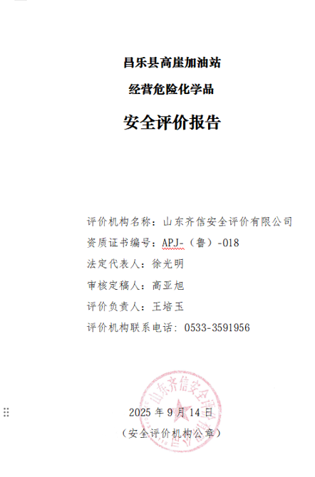 昌乐县高崖加油站位于昌乐县鄌郚镇高崖村,成立于1993年7月31日,2017年09月22日取得昌乐县市场监督管理局核发的新的营业执照,该站法定代表人为李现华。该加油站主要从事汽油和柴油的经营,经营方式为零售。 根据《产业结构调整指导目录(2024年本)》(国家发改委令第7号令)的规定,该加油站经营危险化学品项目不属于目录中的“鼓励类”、“淘汰类”、“限制类”项目,符合国家产业政策的要求。 该站于2020年12月07日取得《成品油零售经营批准证书》(证书编号:鲁油零售证书第3707053030号),有效期为2020年12月07日至2025年12月07日。该站持有的《危险化学品经营许可证》(证书编号:鲁潍危化经[2022]011019号),有效期自2022年11月26日至2025年11月25日。 依据《危险化学品经营许可证管理办法》(国家 安监总局令第55号,根据2015年5月27日国家安全监管总局令第79号修正)等法律、法规、文件的要求,危险化学品经营许可证的有效期为3年,有效期满后需要继续从事危险化学品经营活动的,应提出危险化学品经营许可证的延期申请,该加油站为需要更换危险化学品经营许可证的企业。为此,根据《危险化学品安全管理条例》等有关法律、法规规定,该站需更换危险化学品经营许可证,需对其经营条件进行安全评价。 自2025年11月26日取得《危险化学品经营许可证》以来,该加油站总平面布局、周边环境、加油工艺、危险化学品的储存能力未发生变化。营业期间未发生过安全事故。 该加油站现有从业人员4人,其中安全管理人员1名。该站已建立了安全生产责任制度、安全管理制度和安全操作规程等,制定了生产安全事故应急救援预案,成立了安全生产领导小组,配备了安全员,主要负责人和安全员取得了安全生产知识和管理能力考核合格证。其他从业人员经本单位培训考核合格。 该加油站主营汽油、柴油等成品油,共有加油机4台,其中单枪汽油加油机1台,双枪汽油加油机1台,单枪柴油加油机2台(加油机自北向南依次为0#、95#、0#、92#/92#),汽油主要经营92#、95#,柴油冬季经营-10#,其它季节经营0#。无自助加油机。该站设有埋地卧式内钢外玻璃纤维增强塑料双层储罐4台,其中20m395#汽油储罐1台,30m392#汽油储罐1台,20m3柴油储罐1台,30m3柴油储罐1台(油罐自北向南依次为0#、92#、95#、0#)。柴油折半后计入加油站储罐总容积为75m3,该站为三级加油站。该站采用自吸式加油工艺,该站加油管道为双层热塑性管材,卸油、通气、油气回收系统管道为流体输送用无缝碳钢管材,加油工艺管道全部埋地设置,且不穿越站房。加油机加油软管设置安全拉断阀,油罐设有带有高液位报警功能的液位监测报警系统等信息化设备。加油机机体、值班室内设置紧急切断按钮,并实现手动复位。加油站设有油罐渗漏检测立管、汽油卸油油气回收系统、加油油气回收系统、三次油气回收系统。 |