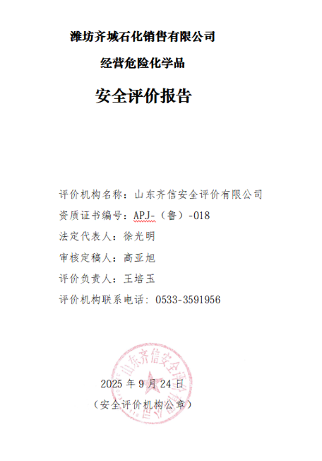 潍坊齐城石化销售有限公司位于山东省潍坊市昌乐县宝城街道首阳山路与潍昌路交叉口东1400米路南,该站成立于2025年6月5日,2025年6月5日取得昌乐县市场监督管理局核发的新营业执照,投资人为马世民。该加油站主要从事汽油和柴油的经营,经营方式为零售。 根据《产业结构调整指导目录(2024年本)》(国家发改委令第7号令)的规定,该加油站经营危险化学品项目不属于目录中的“鼓励类”、“淘汰类”、“限制类”项目,符合国家产业政策的要求。 该站于2022年01月14日取得《成品油零售经营批准证书》(证书编号:鲁油零售证书第3707053067号),有效期为2022年01月14日至2027年01月14日。该站持有的《危险化学品经营许可证》(证书编号:鲁潍危化经[2023]001033),有效期自2023年12月31日至2026年12月30日。 依据《危险化学品经营许可证管理办法》(国家 安监总局令第55号,根据2015年5月27日国家安全监管总局令第79号修正)等法律、法规、文件的要求,该站变更经营主体,为需要更换危险化学品经营许可证的企业。为此,根据《危险化学品安全管理条例》等有关法律、法规规定,该站需更换危险化学品经营许可证,需对其经营条件进行安全评价。 自2023年12月1日取得《危险化学品经营许可证》以来,该加油站总平面布局、周边环境、加油工艺、危险化学品的储存能力未发生变化。营业期间未发生过安全事故。 该加油站现有从业人员6人,其中安全管理人员1名。该站已建立了安全生产责任制度、安全管理制度和安全操作规程等,制定了生产安全事故应急救援预案,成立了安全生产领导小组,配备了安全员,主要负责人和安全员取得了安全生产知识和管理能力考核合格证。其他从业人员经本单位培训考核合格。 该加油站主营汽油、柴油等成品油,共有加油机6台,其中单枪加油机4台,双枪加油机2台(加油机呈南北两排布置,南侧一排2台加油机均为92#/92#,北侧一排4台加油机西向东依次0#、95#、92#、0#);汽油主要经营92#、95#,柴油冬季经营-10#,其它季节经营0#,无自助加油机。该站设内钢外玻璃纤维增强塑料双层储油罐4台,其中汽油储罐2台,容积均为40m3,柴油储罐2台,容积均为40m3(油罐自北向南依次为0#、92#、0#、95#),柴油折半后计入加油站储罐总容积为120m3,该站为二级加油站。该站采用自吸式、潜油泵式两种加油工艺,该站加油管道为双层热塑性管材,卸油、通气、油气回收系统管道为流体输送用无缝碳钢管材,加油工艺管道全部埋地设置,且不穿越站房。加油机加油软管设置安全拉断阀,油罐设有带有高液位报警功能的液位监测报警系统等信息化设备。加油机机体、值班室内设置紧急切断按钮,并实现手动复位。加油站设有渗漏检测系统、汽油卸油油气回收系统、加油油气回收系统、三次油气回收系统。 |