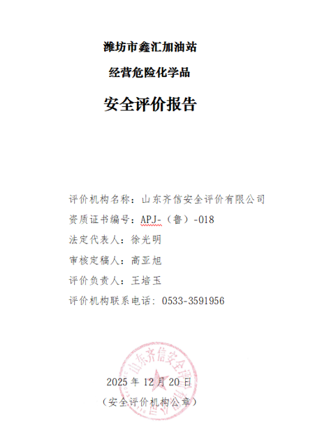 潍坊市鑫汇加油站 经营危险化学品安全评价报告